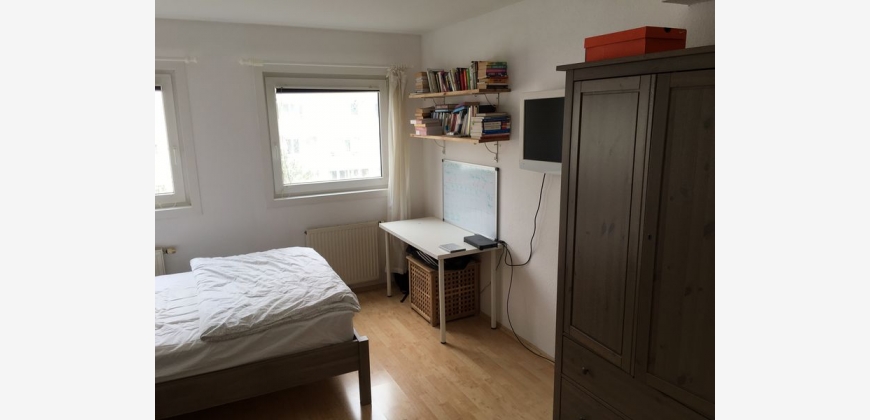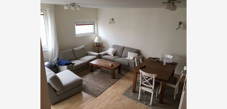 Helle Wohnung gleich vis-à-vis Panorama (83m2 + 7m2 Loggia). Zwei separate Zimmer (jeweils 15m2), Wohnzimmer mit voll ausgestatteter Küche.