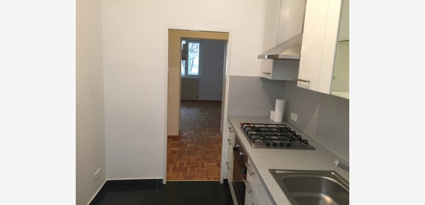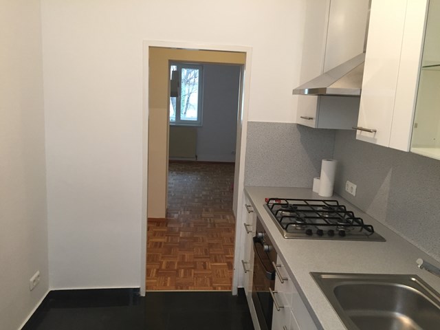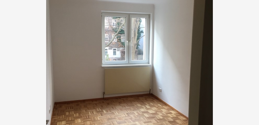 Voll ausgestattete Küche, Bad mit Wanne und weitere 3 Räume. Wohnzimmer und zwei Schlafzimmer (getrennt begehbar). Außerdem gibt es eine Loggia in den ruhigen, grünen Innenhof. Absolute Ruhelage mit guter Verkehrsanbindung. Ein Waschraum mit Geräten und Trockner befindet sich im Haus.