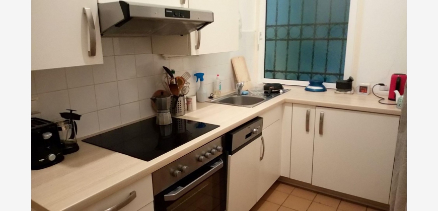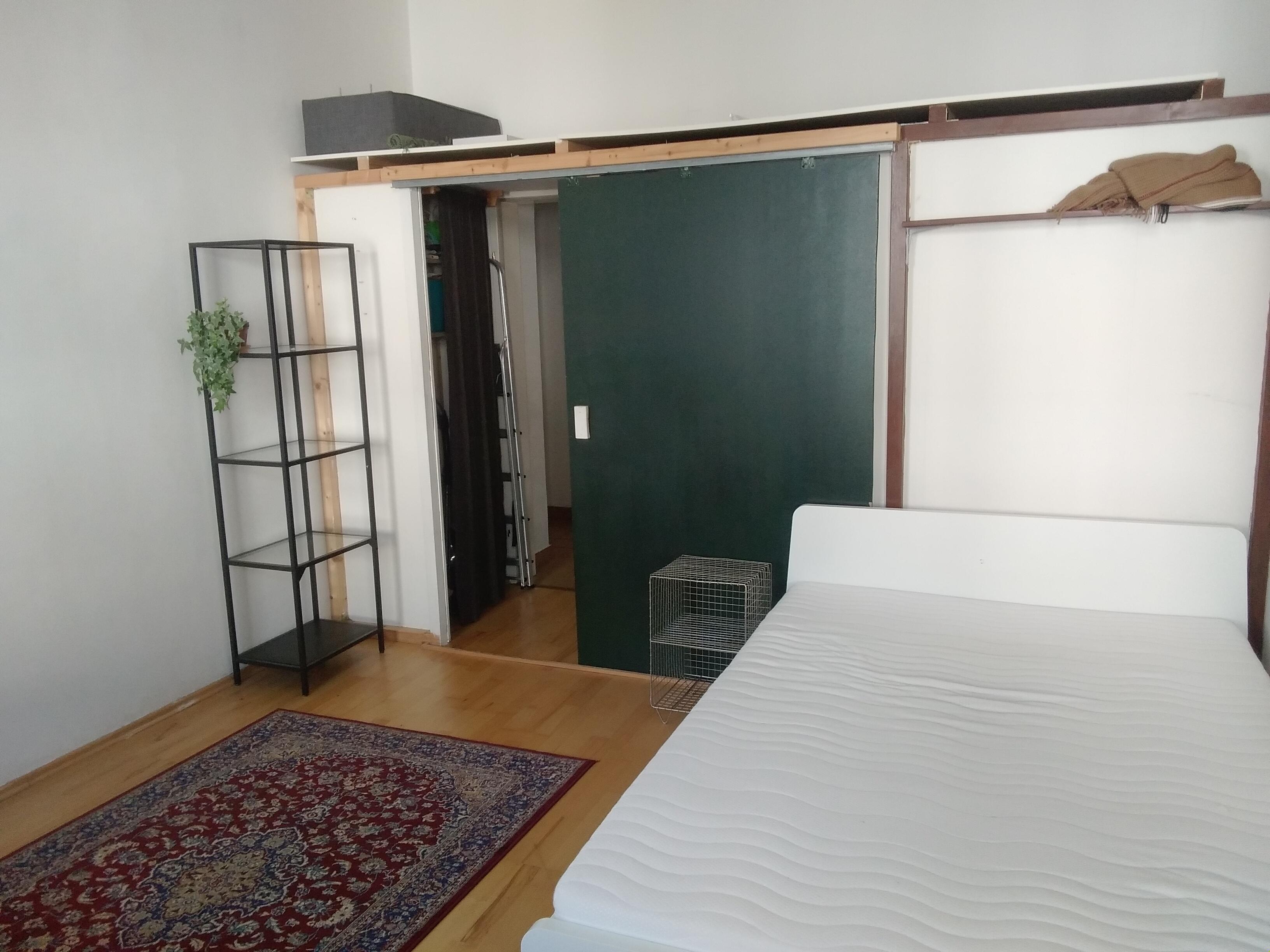 Bett, Couch, Schreibtisch und ein kleines Regal sind vorhanden. Bettwäsche kann ich bei Bedarf stellen. Die Küche ist voll ausgestattet. Das Zimmer ist 17 m2 groß. Bad mit Dusche ist vorhanden.