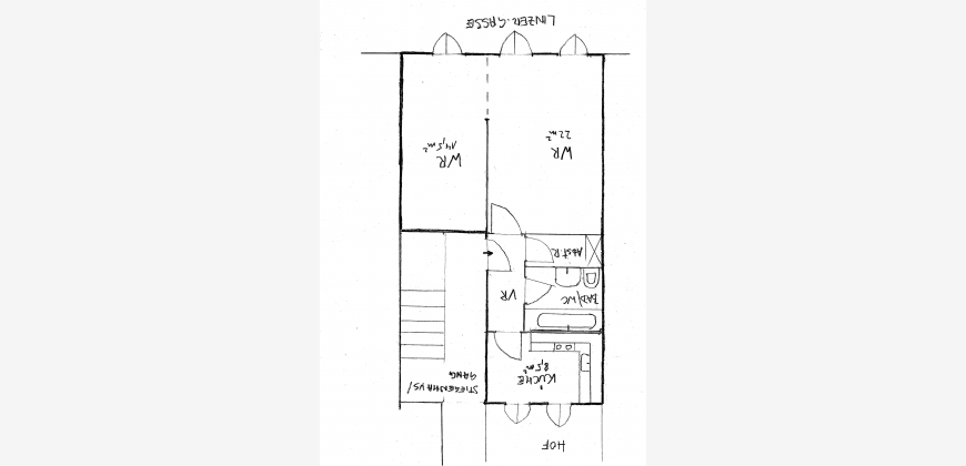 Die Wohnung liegt im 2. Stock des Hauses Linzer Gasse 34 und besteht aus 2 miteinander verbundenen Zimmern, die durch eine Schiebetüre abgetrennt werden können, einem Vorraum, Wohnküche, Bad/WC und Abstellraum.