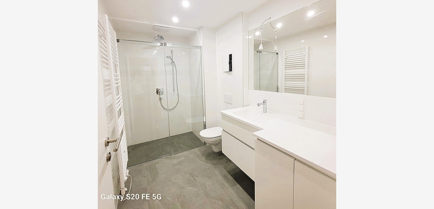 und Läden für Toilettartikel, Handtücher, etc., beheizbarer Handtuchtrockner, extragroße Dusche mit