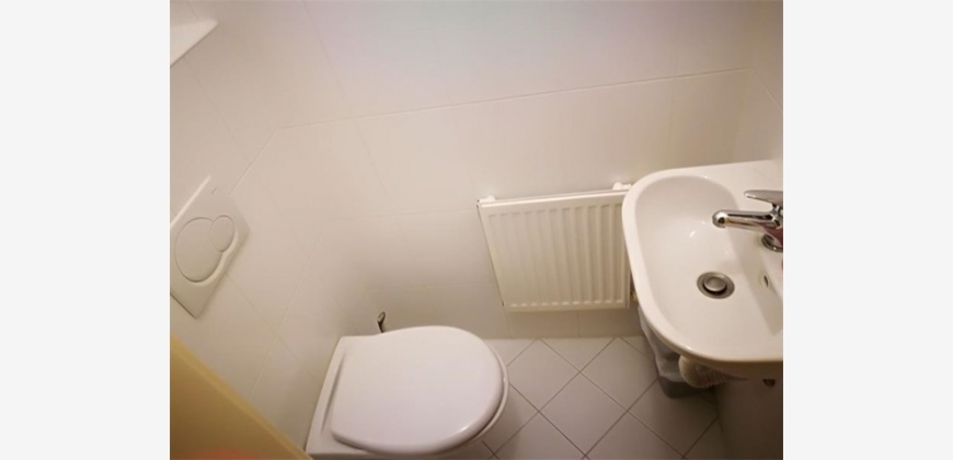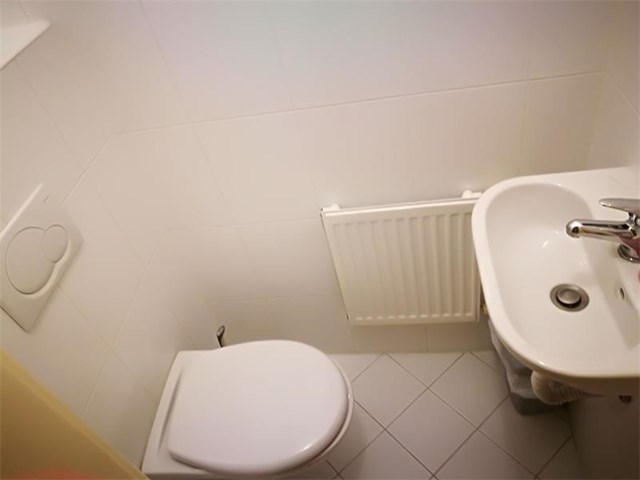 Separates WC mit Handwaschbecken.