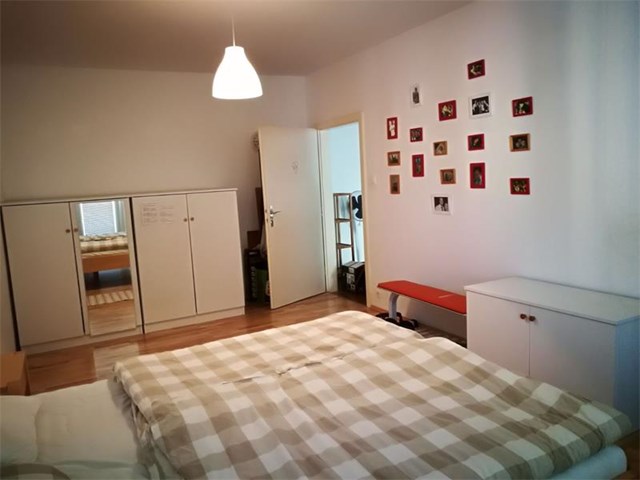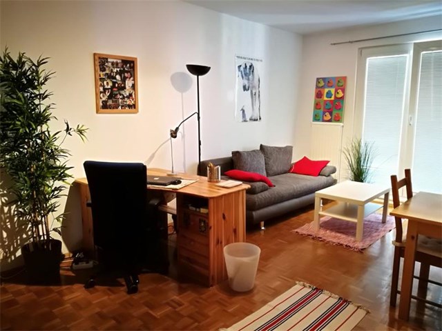 Die Wohnräume sind mit Parkettboden belegt.