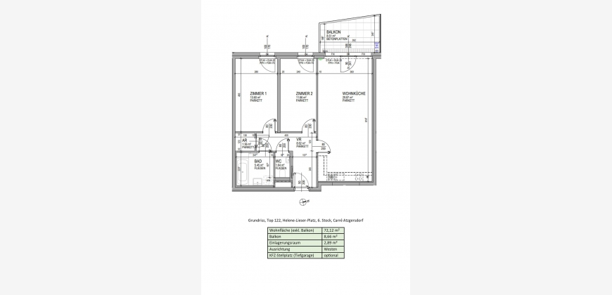 Ein KFZ-Stellplatz direkt im Haus ist optional für € 90,- pro Monat (inkl. BK) verfügbar.