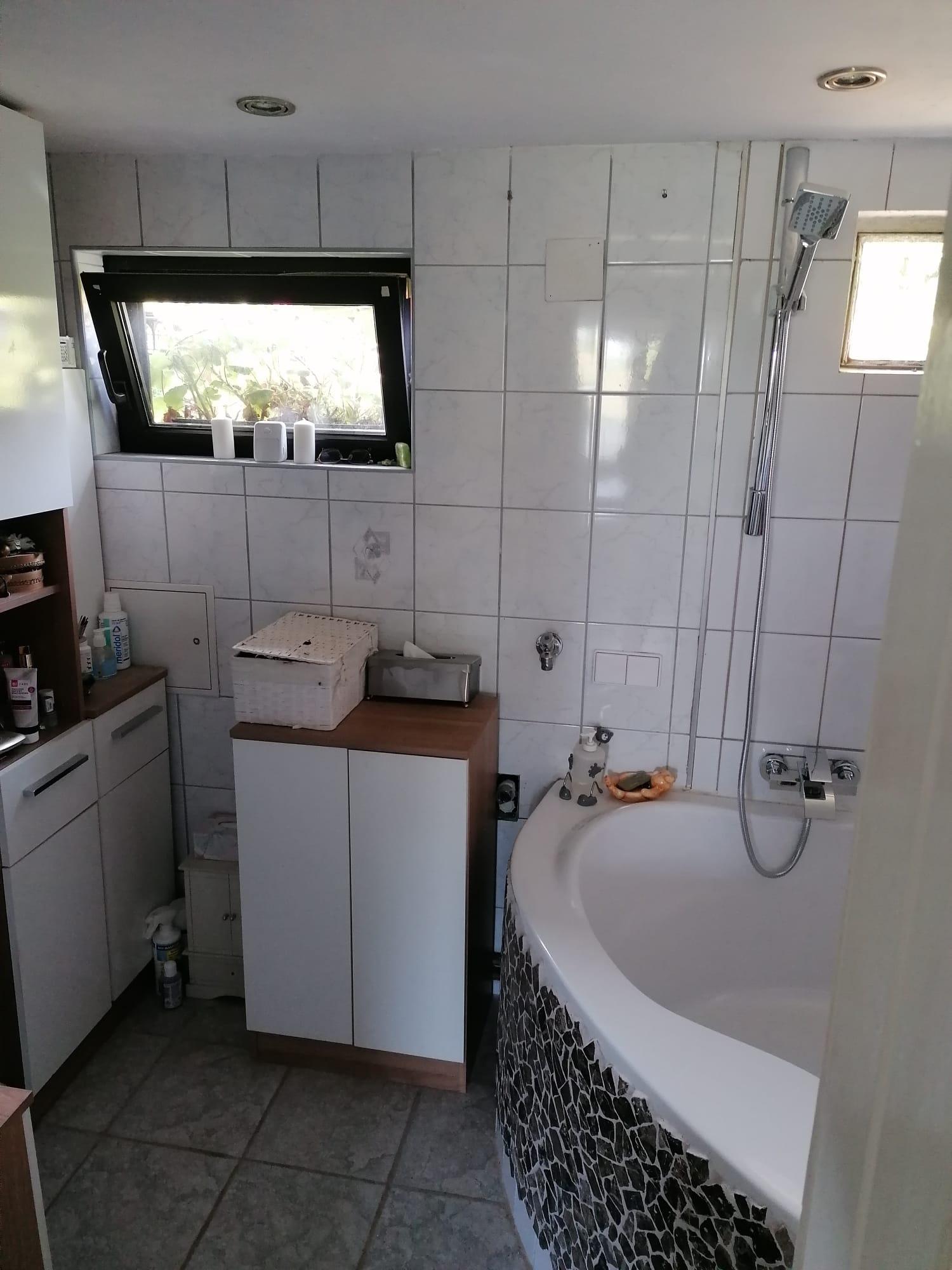 Das Bad verfügt über eine Dusche und eine Eckbadewanne, es gibt 2 separate WCs.