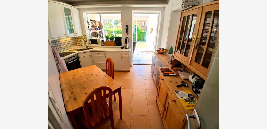 • Wohnzimmer und Küche mit direkten Zugängen zur Terrasse und zum Garten.