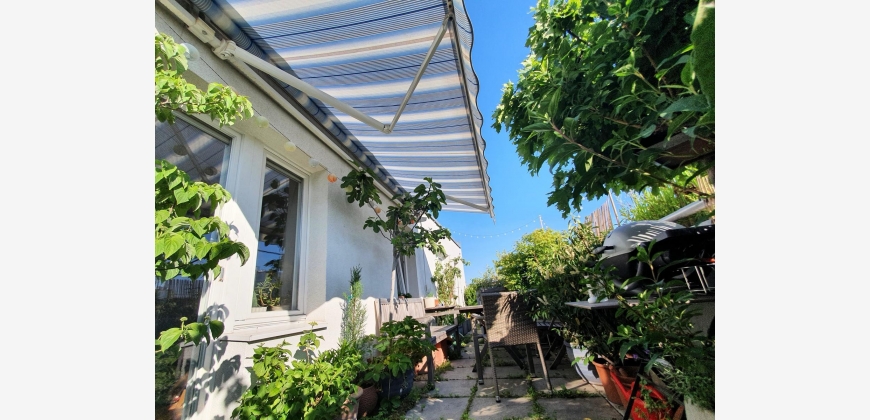 Die Fenster und Terrassentüren wurden vor wenigen Jahren mit semitransparenten Außenrollos (clip'n'shade) ausgestattet.