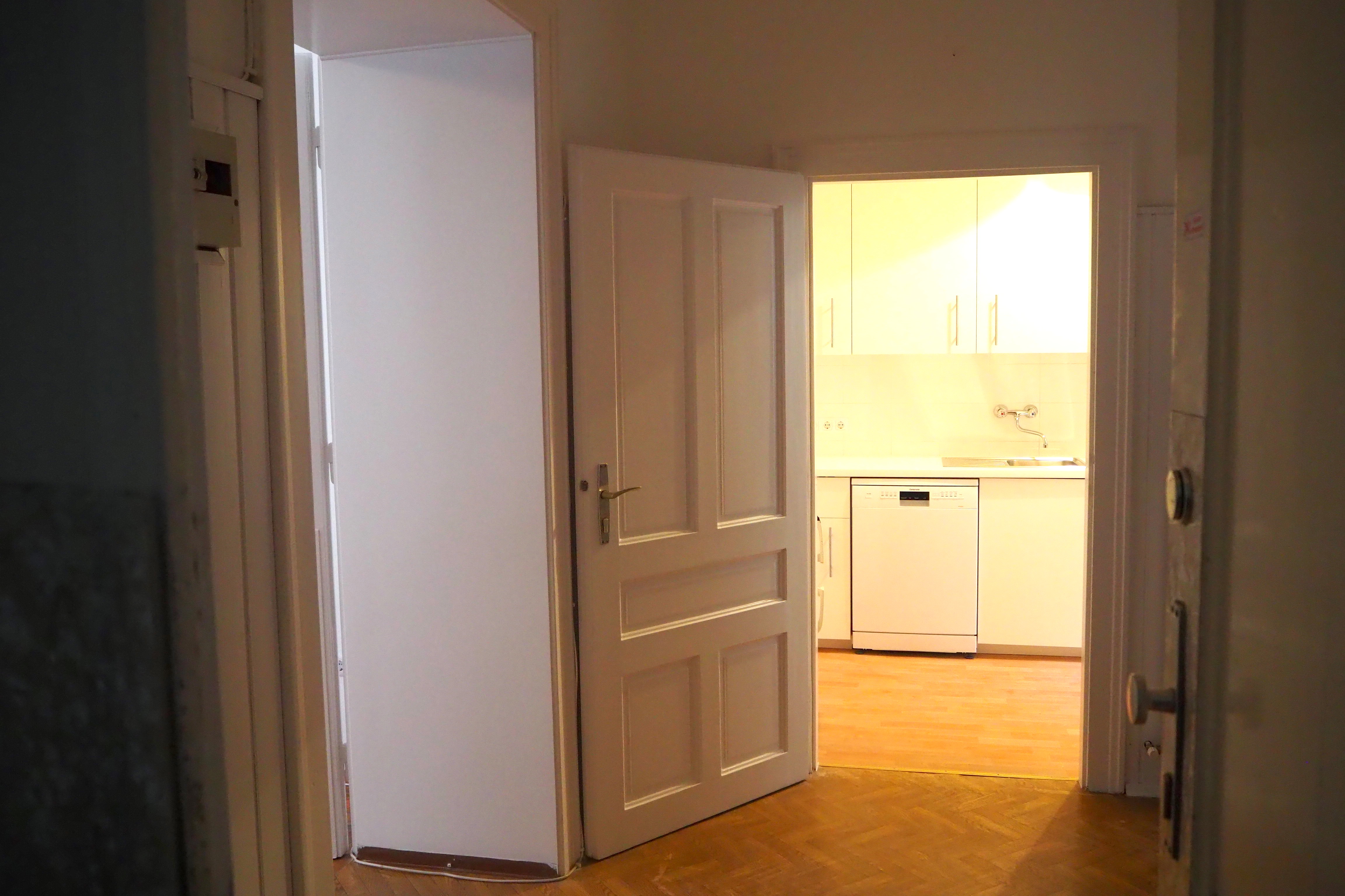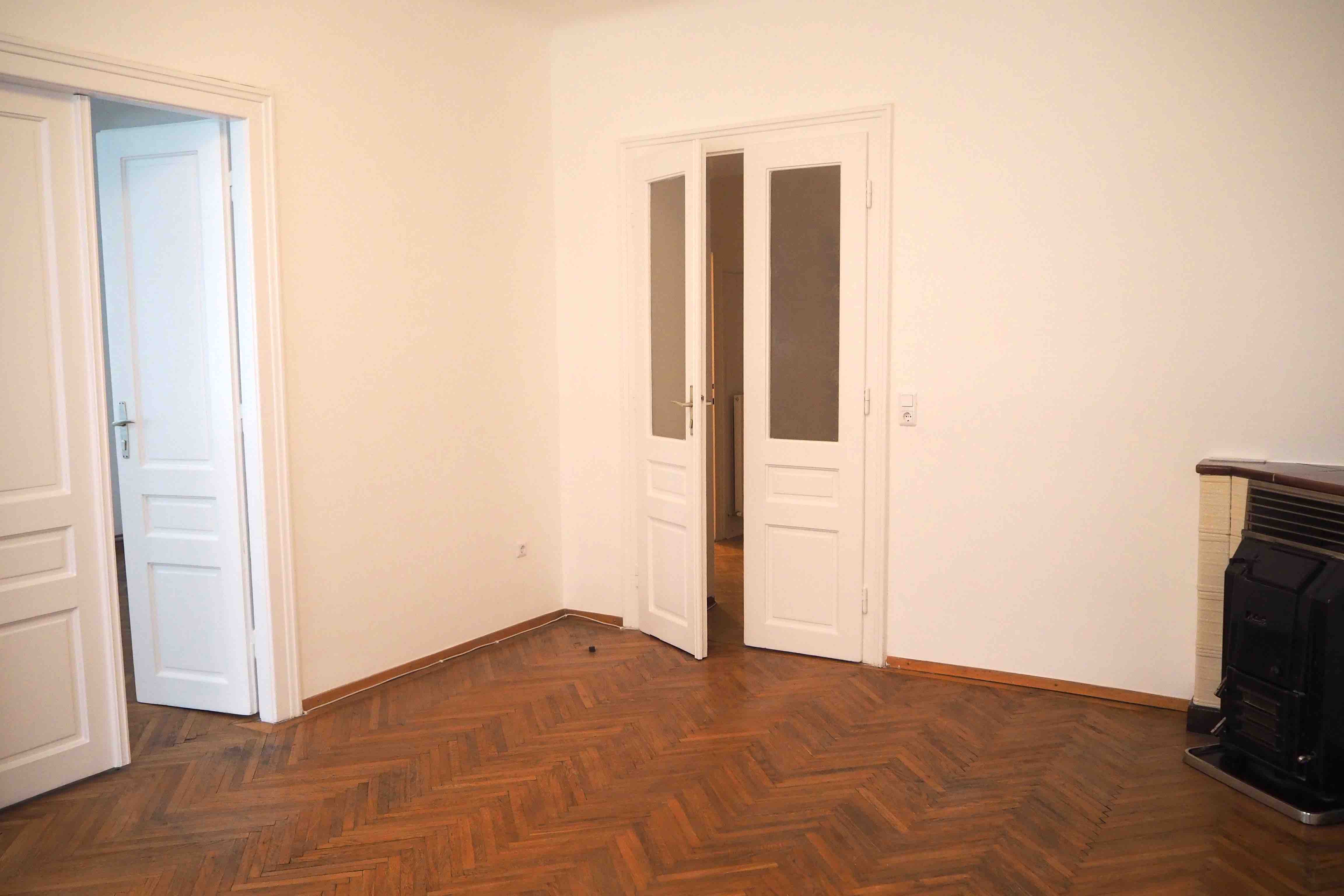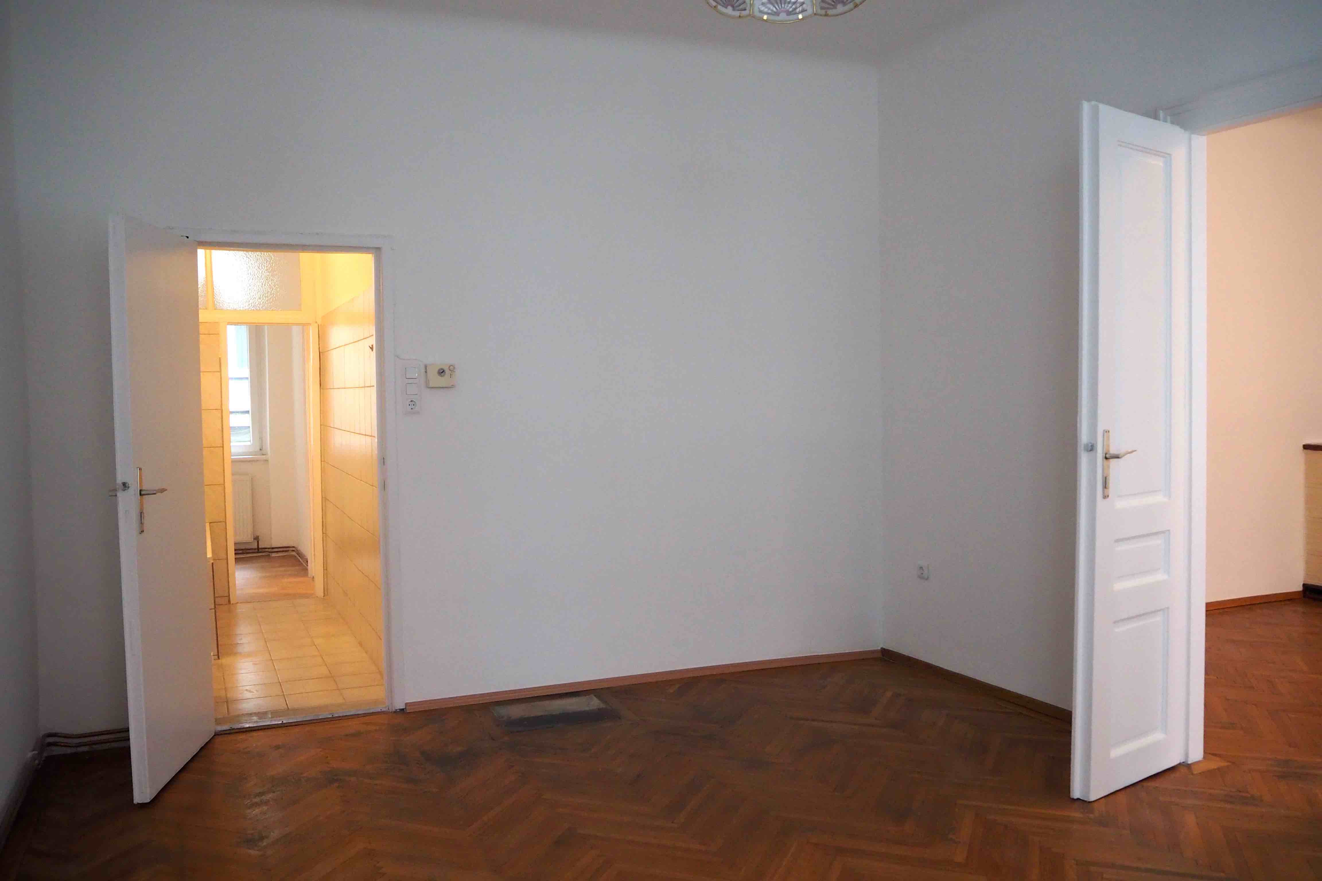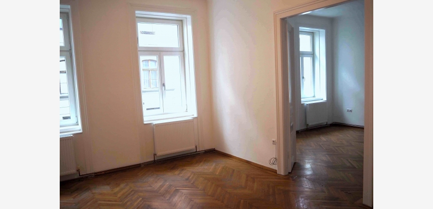 2 ca. 20 m² große, getrennt begehbare Zimmer, Küche, Vorraum, Abstellraum, Bad und separates WC. Die Wohnung befindet sich im 1. Stock (ohne Lift dafür mit viel Licht), ist ein Altbau und wurde generalsaniert. Im Badezimmer wurde lediglich die Therme erneuert und ein neuer Heizkörper installiert.