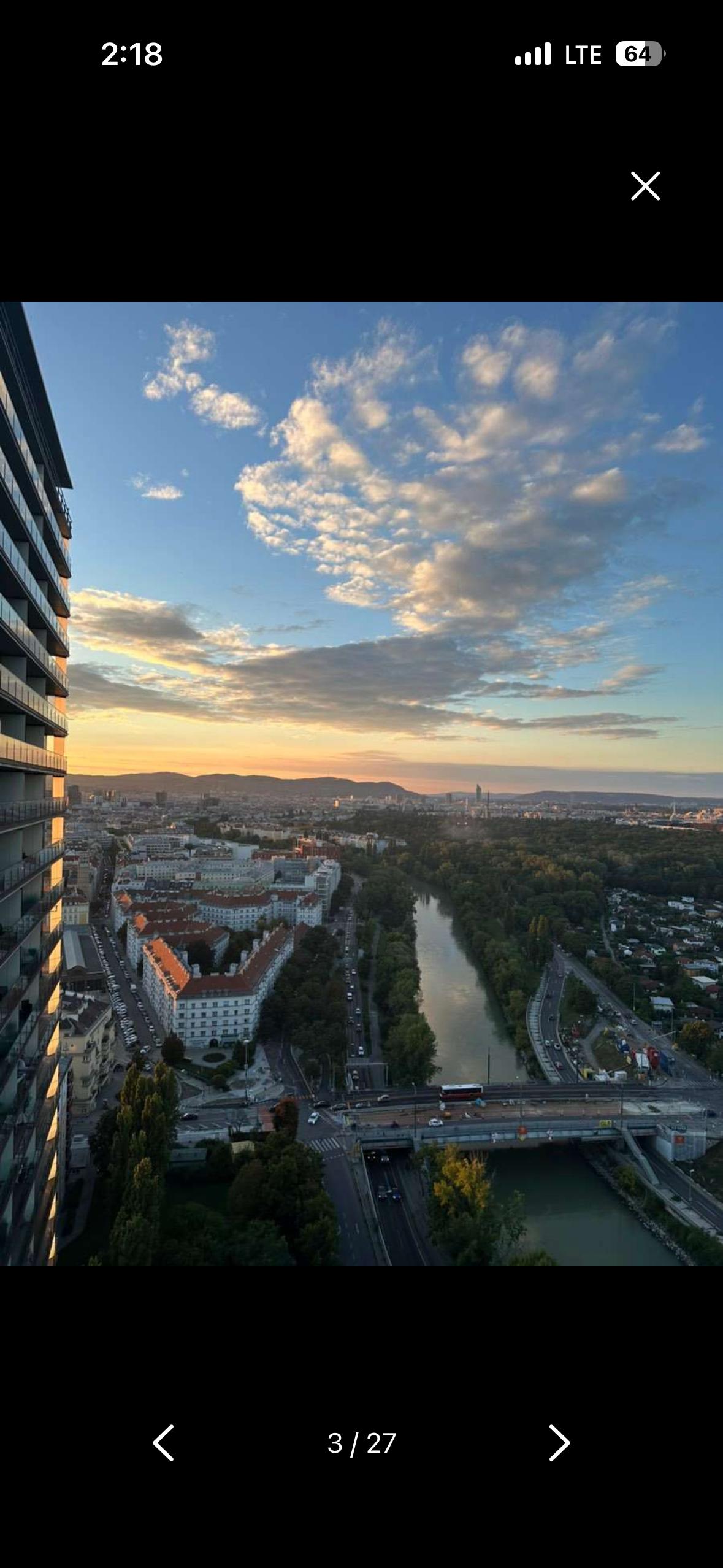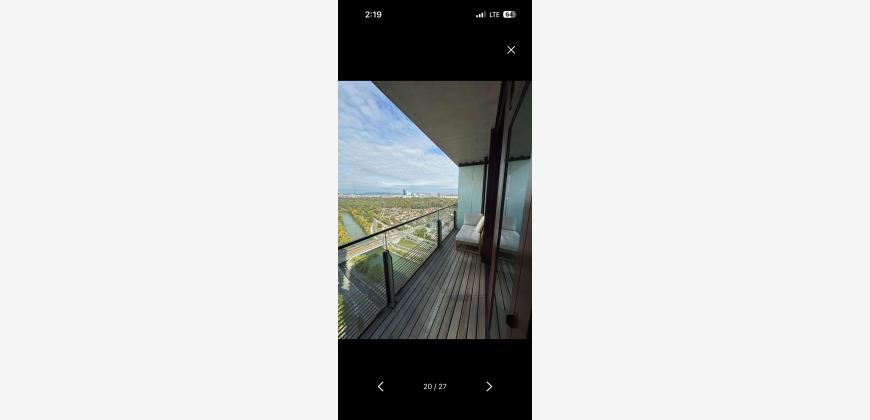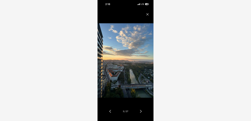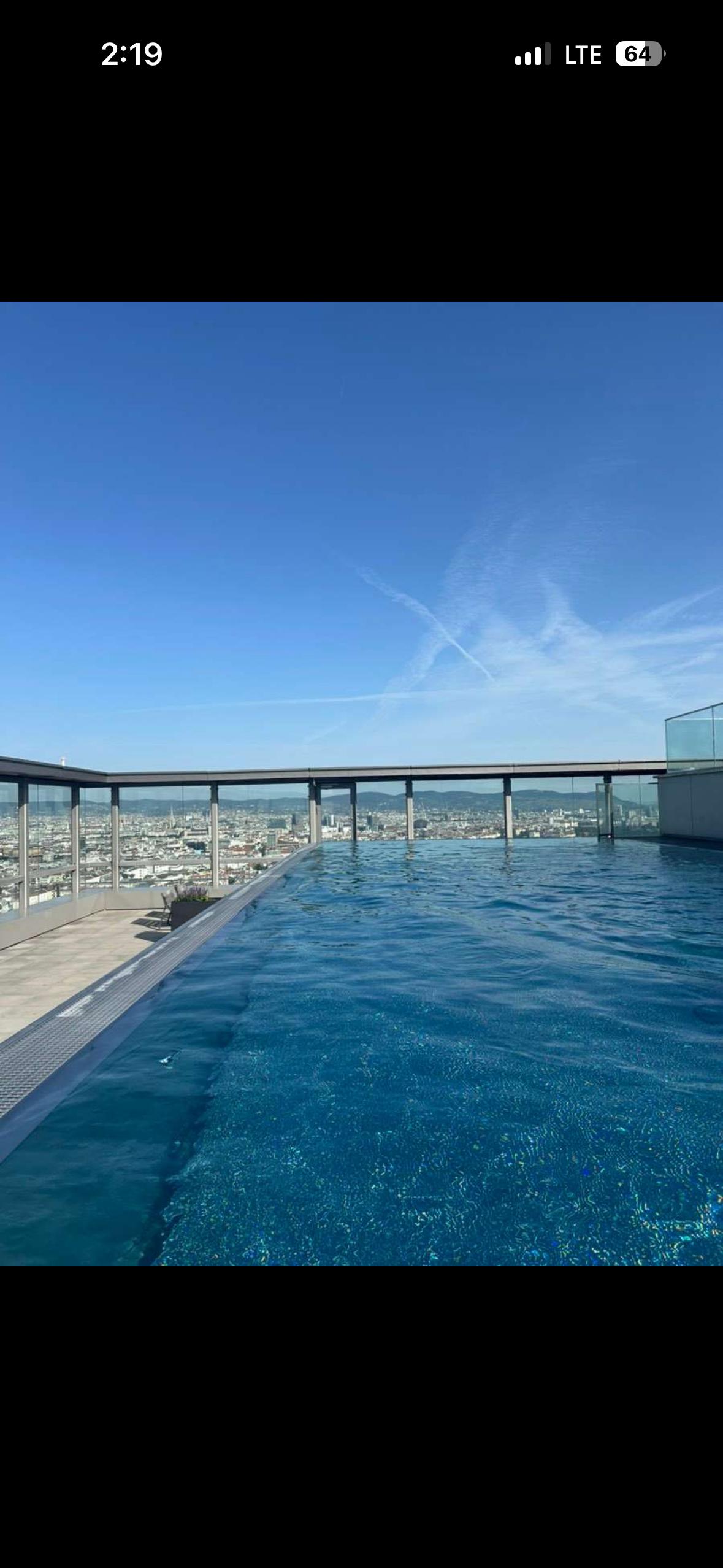 This modern 2-room apartment with a rooftop pool (approx. 51 m2 plus luxurious balcony) is located on the 27th floor of the second TRIIIPLE TOWER and offers a unique view over Vienna, including the city skyline, the Prater (Park and Amusement Park) and breathtaking views of mountains.