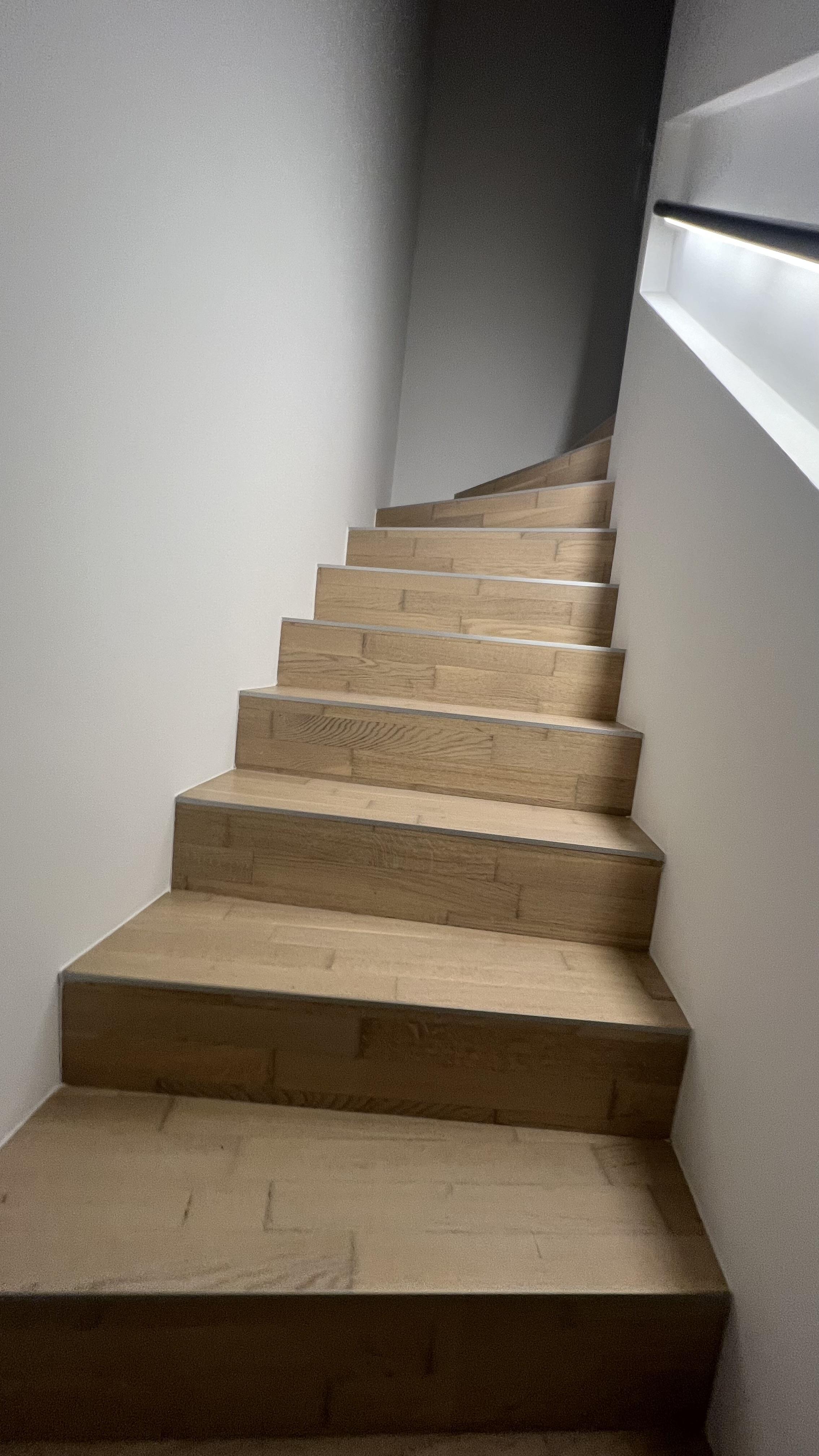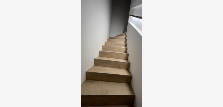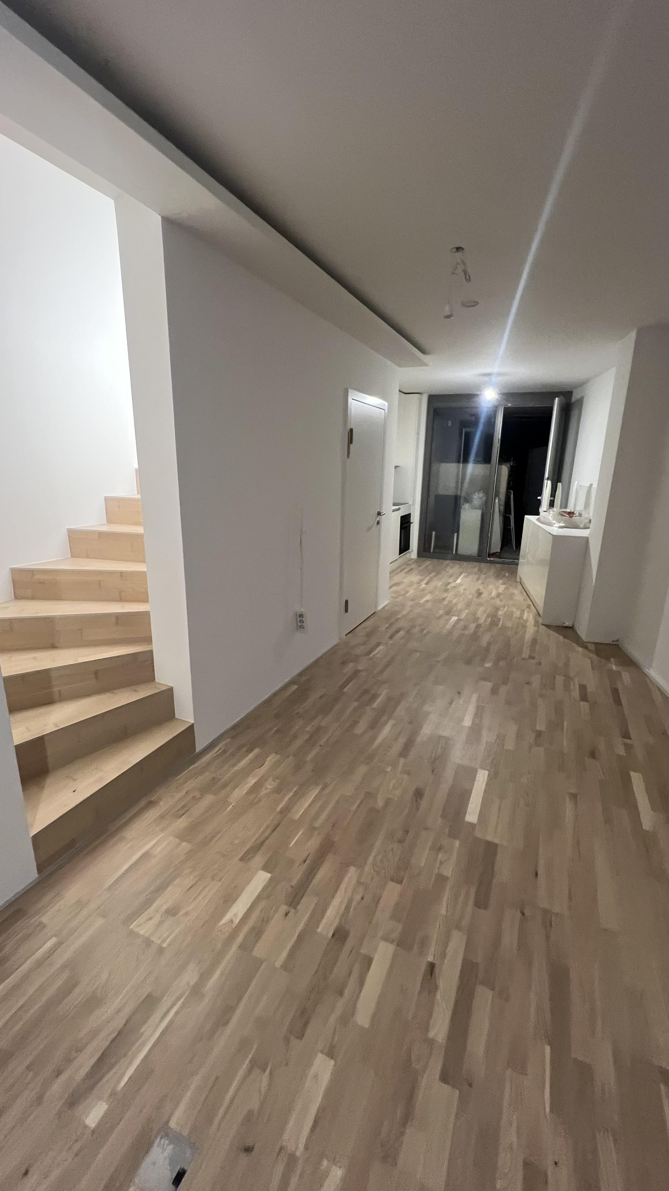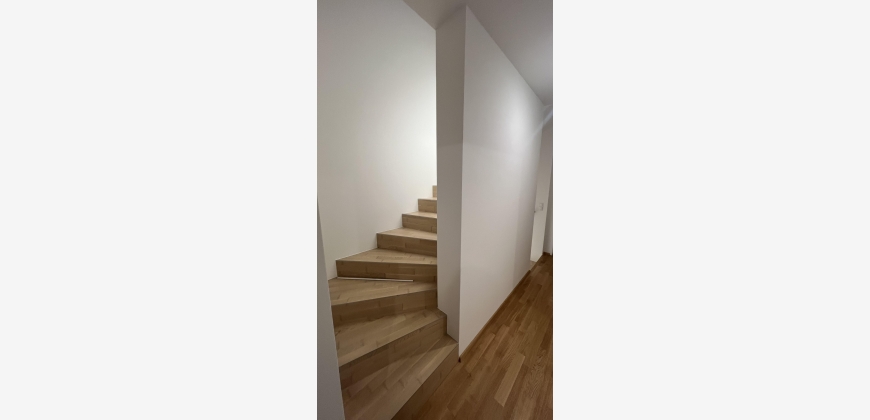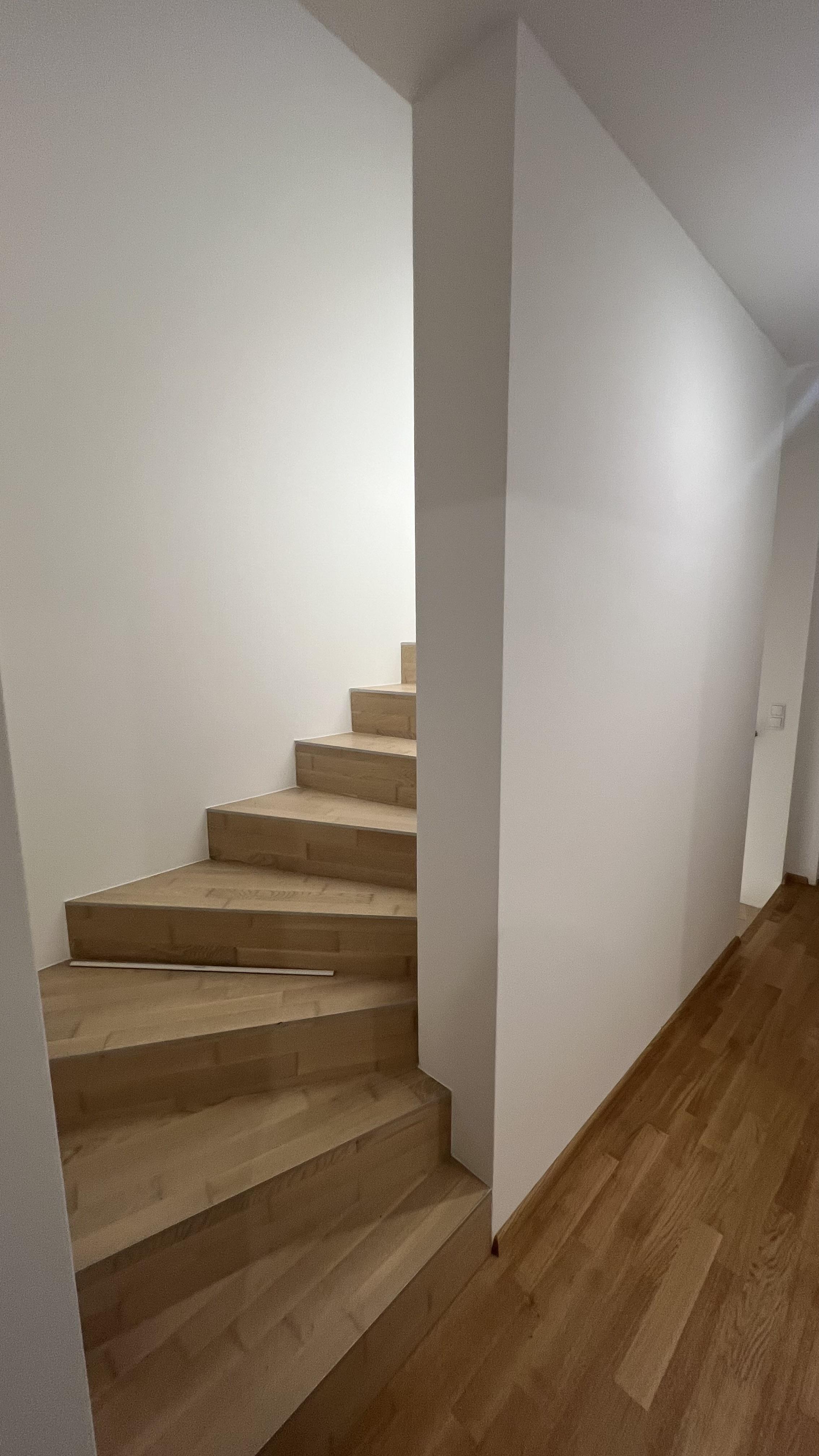 Die reine Wohnfläche erstreckt sich ebenfalls über drei Ebenen und beinhaltet im Zwischenstock die beiden Kinderzimmer und die Sanitärbereiche sowie im Obergeschoß das Elternschlafzimmer.