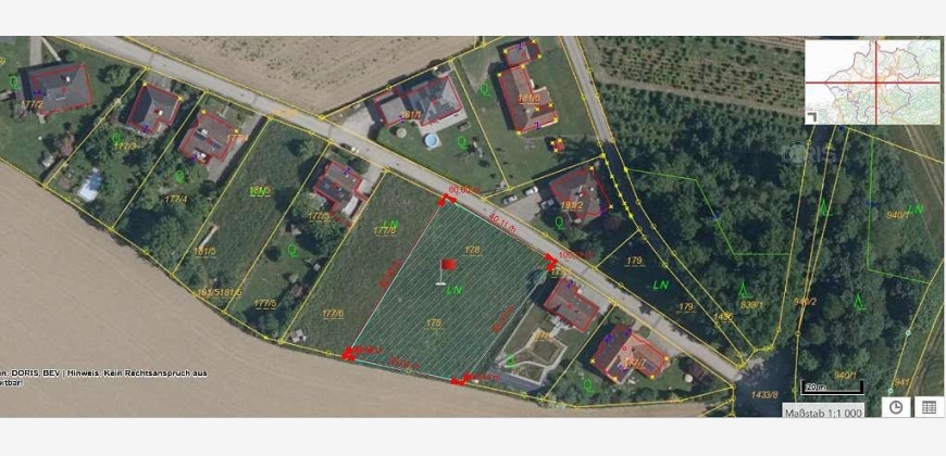 Dieses Grundstück mit 2 Bauparzellen mit je ca. 1.000m² (gesamt 2.011m²) liegt in einer kleinen Wohnsiedlung am Forstberg. Es ist bereits voll erschlossen. Das Grundstück hat keinen Bauzwang! Es kann als Doppelparzelle oder einzeln erworben werden € 250/m².