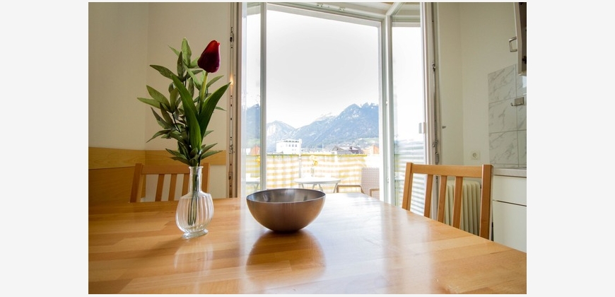 Diese helle, gut geschnittene 3-Zimmer-Wohnung liegt in einer gepflegten Straße, einer ruhigen, grünen Wohngegend. Genießen Sie die herrliche Aussicht auf die umliegende Bergwelt und die Nähe zur Innenstadt.