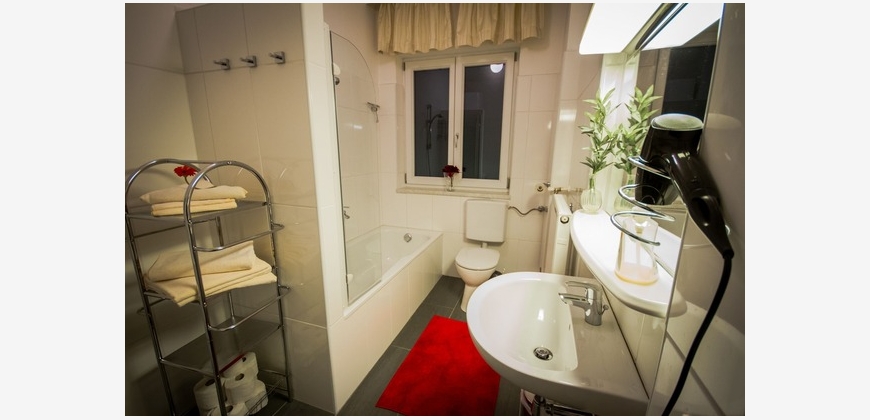 Die Wohnung befindet sich in einem Wohnhaus mit Lift und verfügt über einen sonnigen Balkon, auf dem sich sowohl der Morgenkaffee als auch der Sonnenuntergang mit Blick in die Berge genießen lässt.