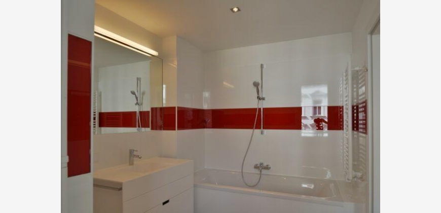 Im Badezimmer erwartet Sie ein Waschtisch, Badewanne, Fenster, Waschmaschinenanschluss und ein Sprossenheizkörper für warme Handtücher. Separates WC vom Vorraum begehbar.