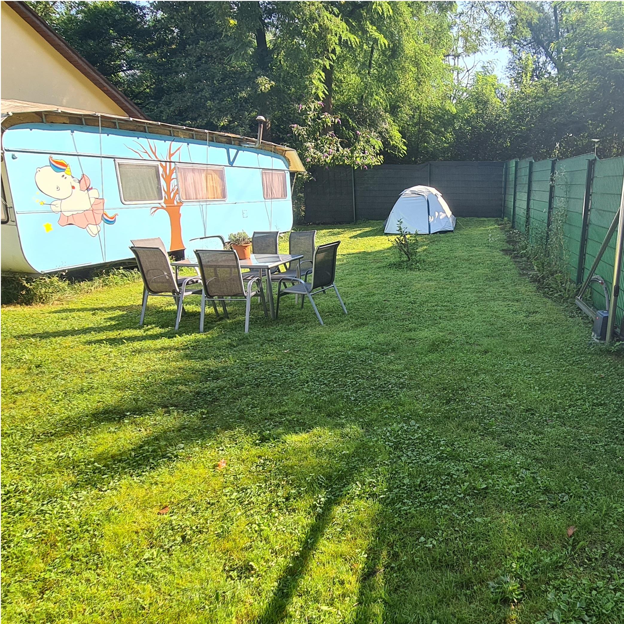 Wir vermieten einen 20 m² Wohnwagen in Graz-Süd, direkt am Mur-Radweg und am Wald. Auch tage- oder wochenweise.