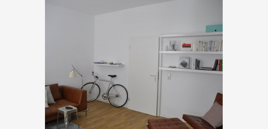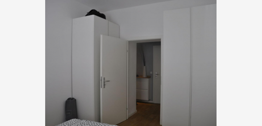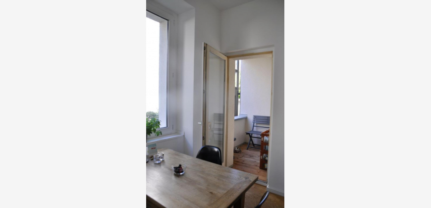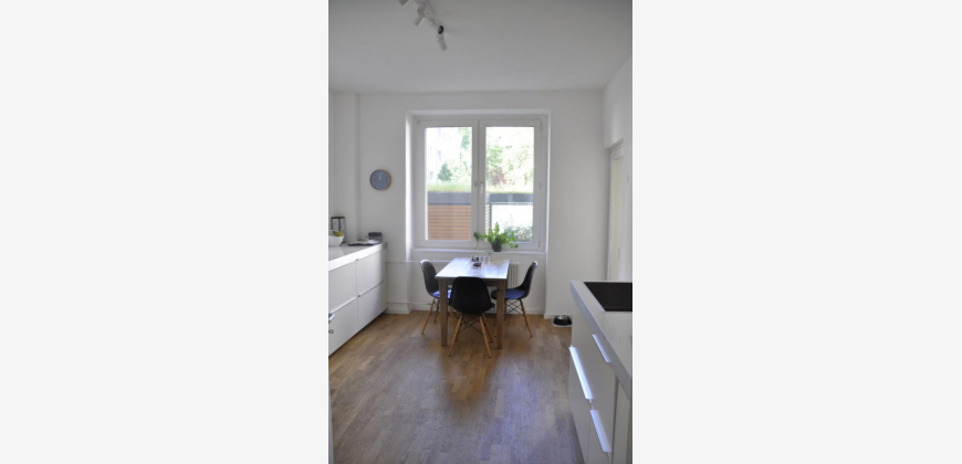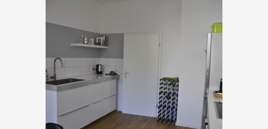 Die Wohnung, im 1. Geschoss ist fast neu renoviert. Sie verfügt über 2 Zimmer und eine große Küche mit Essplatz und Zugang zum Balkon. Durch die Aufteilung der Wohnung ist diese auch sehr gut als WG geeignet. Es gibt einen mittelgroßen Balkon mit Holzboden (Nord). Die Wohnung wird vermietet mit Küche, Geschirspüler und Waschmaschine.