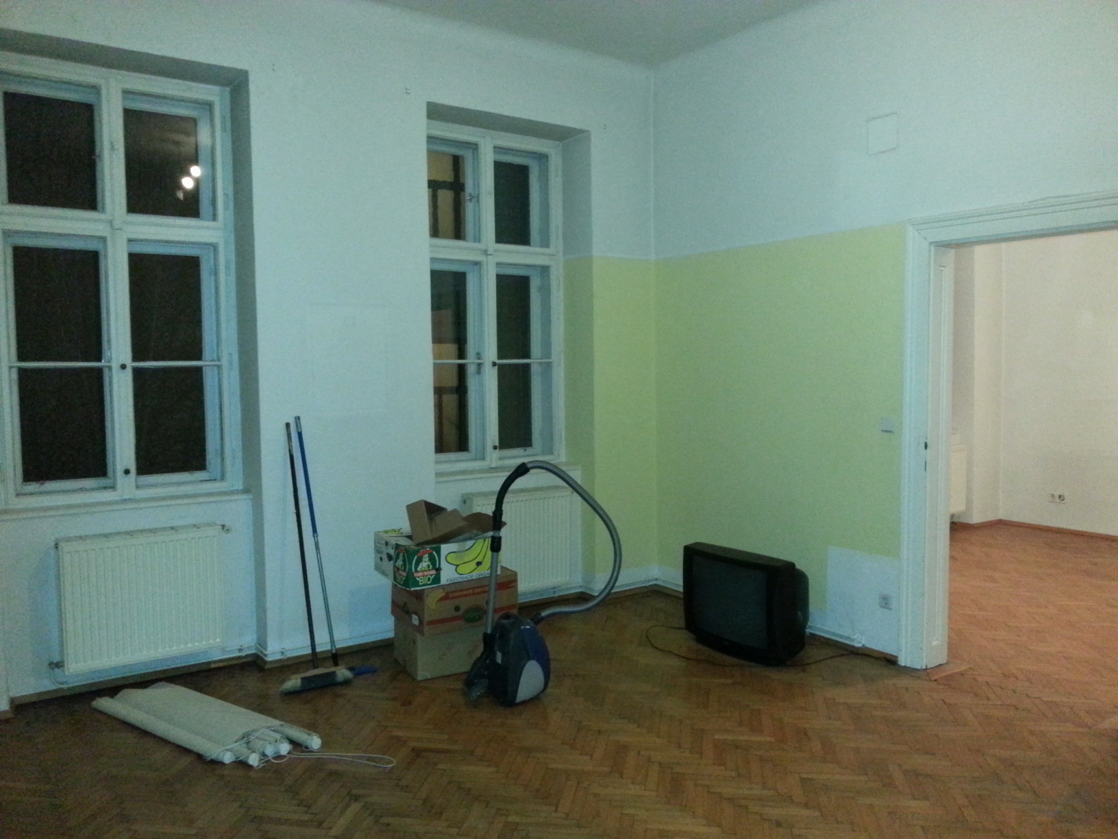 Die typischen Elemente eines klassischen Altbaus wie Fischgrätparkett, Kastenfenster, Holzfüllungstüren und 3,40 m hohe Räume wurden liebevoll erhalten.