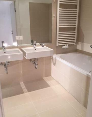 - exklusives Badezimmer mit Wanne, Dusche sowie Doppelwaschbecken und WC