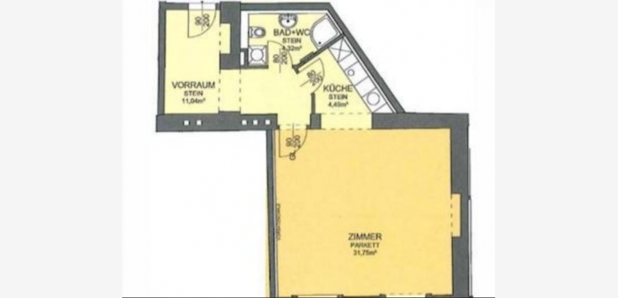sehr schöner, sanierter altbau (mit neuen fenstern!) im 1. stock (aber mit mezzanin, also wie 2. stock) mit LIFT, imposanter eingang!