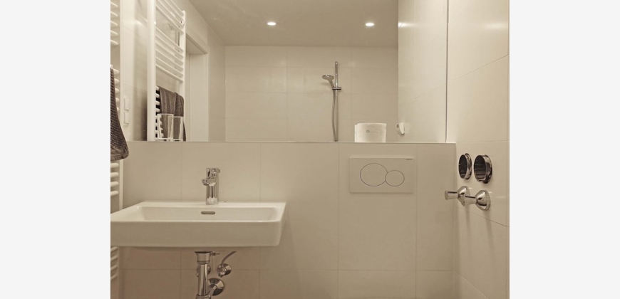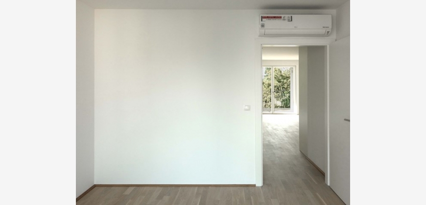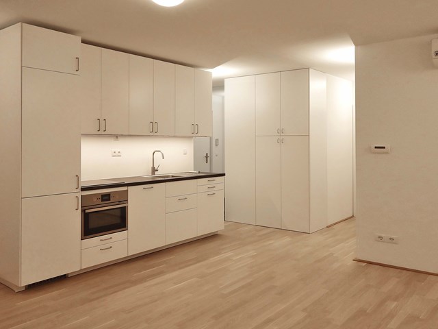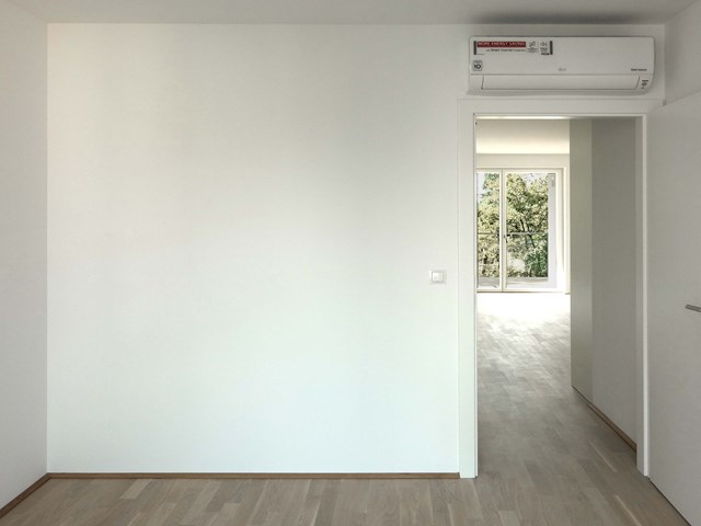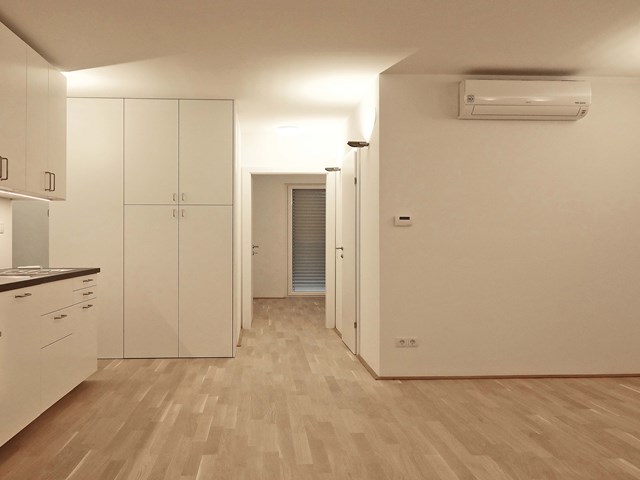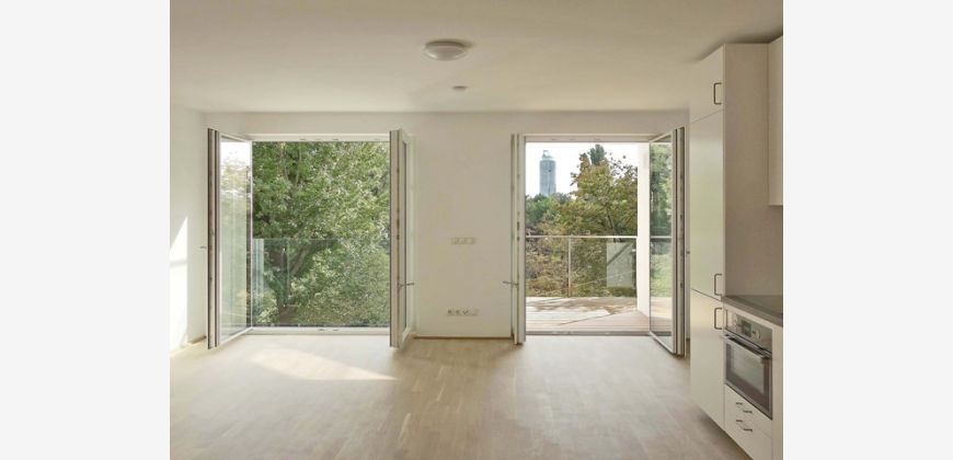 Hochwertig und überkomplett ausgestattet mit Klimaanlage, Küchenzeile mit hochwertigen Geräten, Einbauschränken und bereits fertig installierten Wand- und Deckenleuchten in allen Räumen. Die große, Wohnküche mit dem vorgelagerten sonnigen Balkon liegt direkt am Wasserpark mit unverbaubarem Blick Richtung Donau. Hofseitiges Schlafzimmer in absoluter Grün-Ruhelage. Vorzimmer mit Einbauschrank für Garderobe, Schuhe und Hausrat und einem wandgroßen Spiegel. Das Badezimmer mit Waschtisch, großem Spiegel, Badewanne mit Duschwand und WC liegt zwischen dem hofseitigen Schlafzimmer und dem parkseitigen Wohnraum. Die gesamte Wohnung kann somit gut querbelüftet werden. Große raumhohe Fenster mit elektrisch gesteuerten Außenjalousien, Fußbodenheizung, Parkettböden, bzw. großformatige Fliesen im Vorraum und Bad.