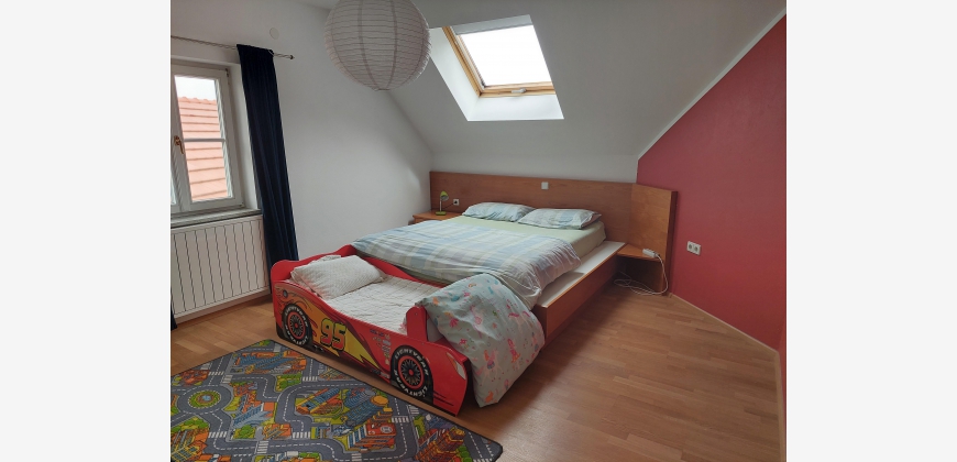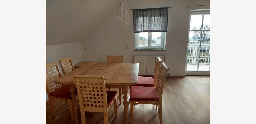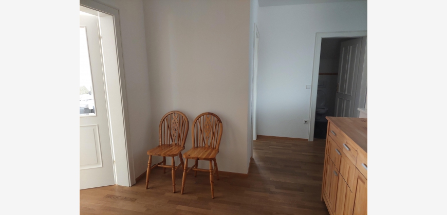 100m² möblierte Wohnung im 1. Stock kurzfristig zu vermieten. Küche mit Abstellkammer, grosser Wohn/Essraum, Badezimmer, WC separat, Schlafzimmer, begehbarer Schrank, südseitiger Balkon. Carport ab Juli 2022 vorhanden. 900 € Miete plus 280€ BK (inkl Strom).