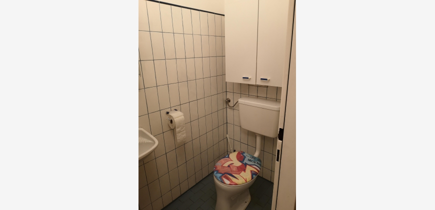 Es gibt ein WC, ein Bad mit WC und Dusche und ein zusätzliches Bad, in welches man Waschmaschine/Trockner stellen könnte, sowie einen Abstellraum.
