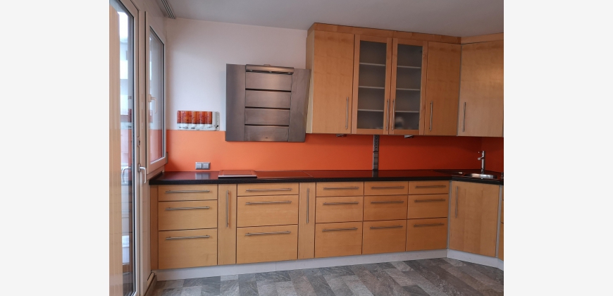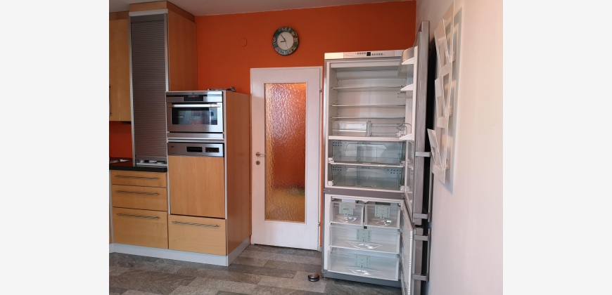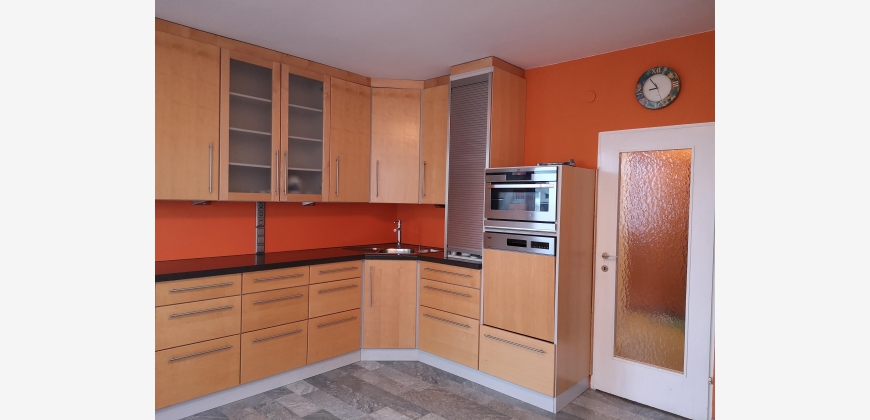 Die Küche verfügt über hochwertige Einbaugeräte sowie einen geräumigen Edelstahl-(Tief-)Kühlschrank und wurde vom Tischler angefertigt. Weiters ist über die Küche ein kleiner Balkon zugänglich.