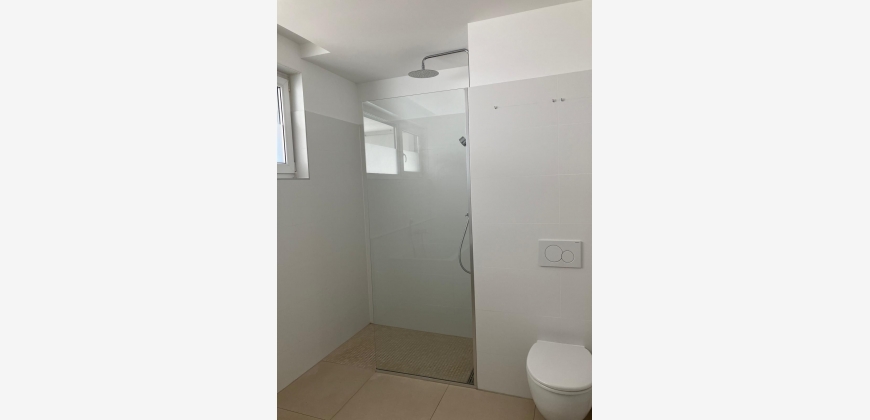 Das geräumige Bad mit hellen Fließen ist mit einer Badewanne sowie Dusche WC ausgestattet, die Wohnung verfügt daneben über ein separates Gäste-WC.