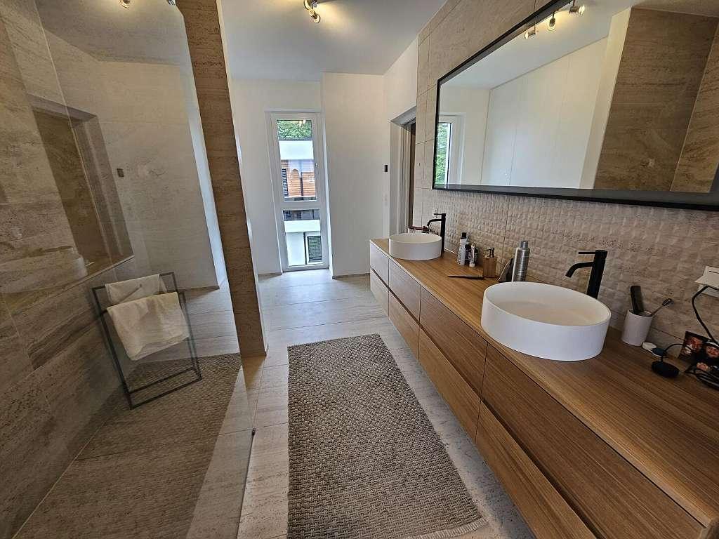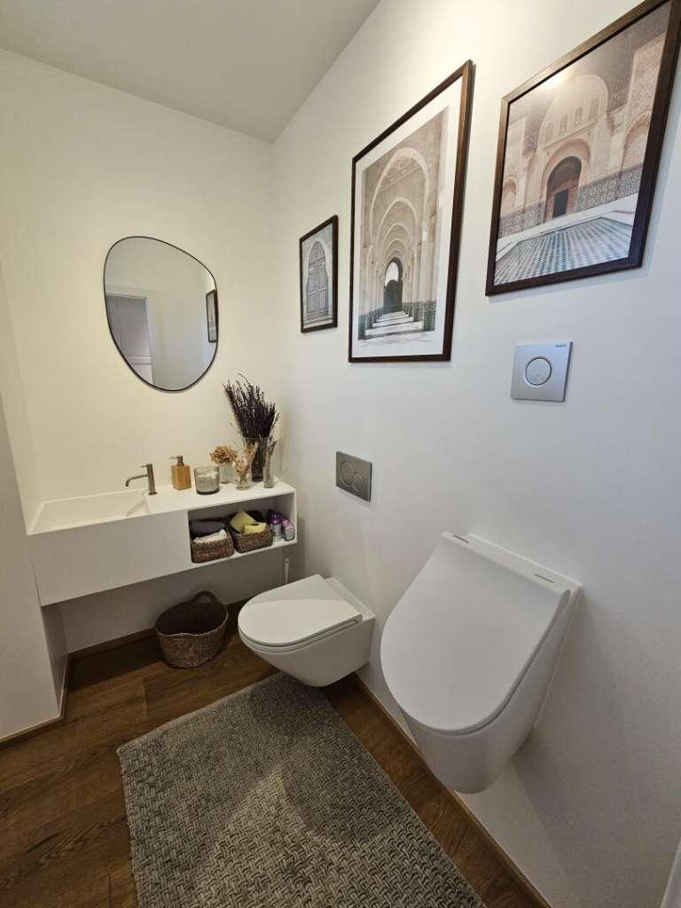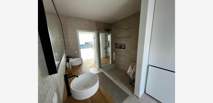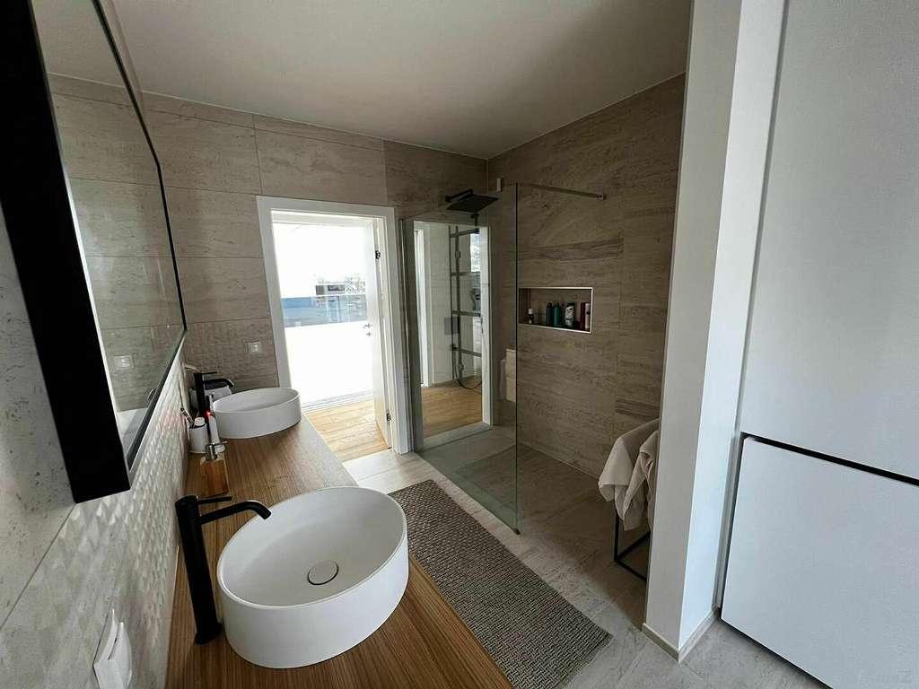Die Wohnung ist hochwertig ausgestattet. Sie verfügt über ein Badezimmer, Parkettböden, eine Einbauküche und Fußbodenheizung mit Gasversorgung. Zur Klimatisierung ist eine Klimaanlage installiert. Für Fahrzeuge stehen zwei Stellplätze in Form eines Carports zur Verfügung. Die Immobilie eignet sich auch als Feriendomizil und bietet die Möglichkeit zur virtuellen Besichtigung.