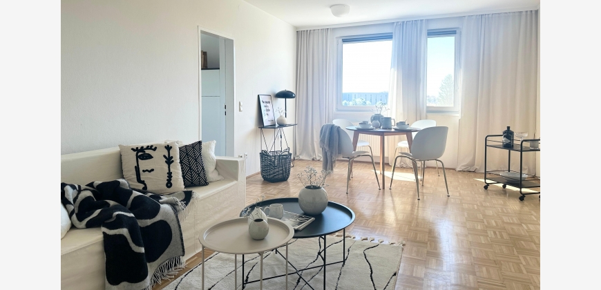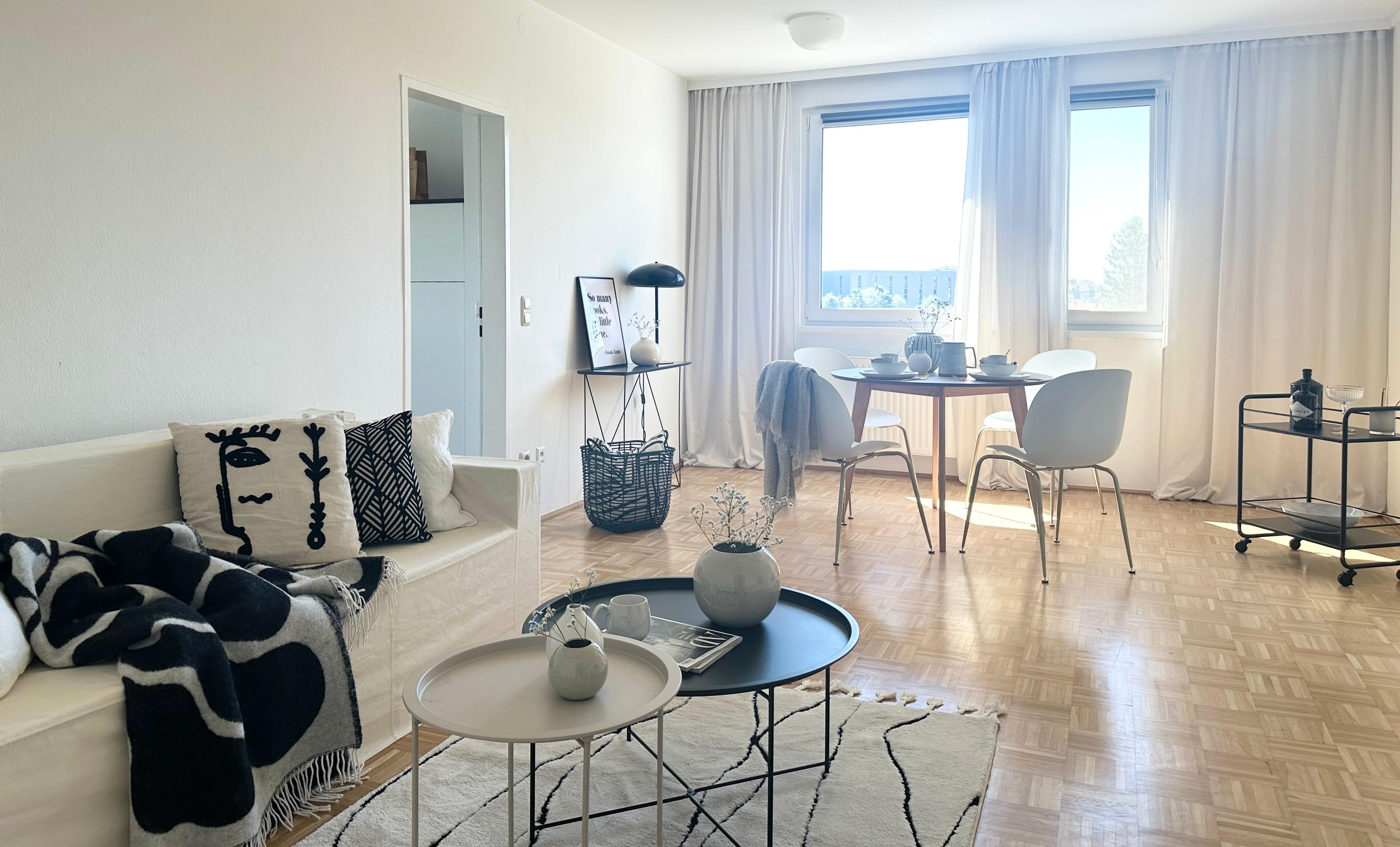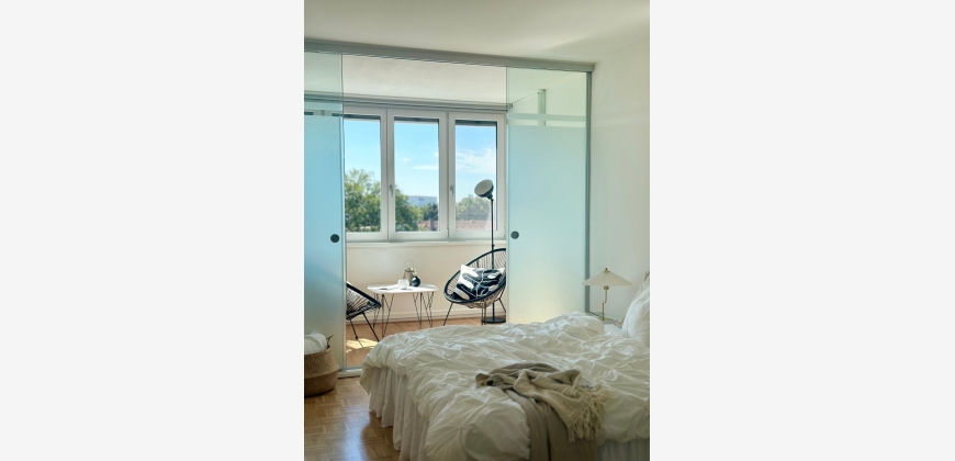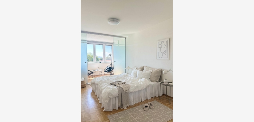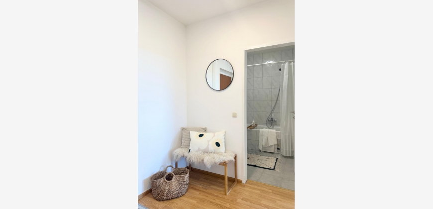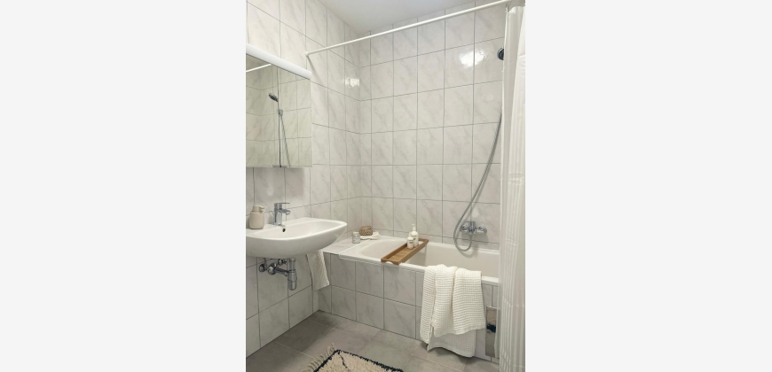 Die 60 m² Wohnung befindet sich in ruhiger Zentrumslage und ist nach Süden ausgerichtet. Sie besteht aus Wohnzimmer, Schlafzimmer, einer Küche, Vorzimmer, verglaster Loggia, Bad und WC getrennt. Die auf den Fotos sichtbaren Möbel werden noch entfernt. Einige können eventuell übernommen werden. Die neuwertige moderne Küche, als auch die Beleuchtung und der Sonnenschutz bleiben.
