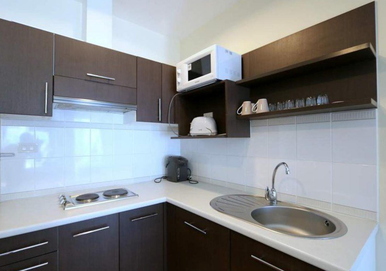 Zweites Stockwerk, 2 Zimmer, Küche (Herd, Kühlschrank), schöner Balkon, Klimaanlage