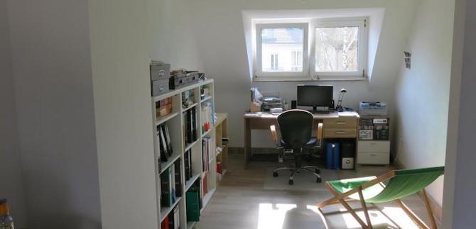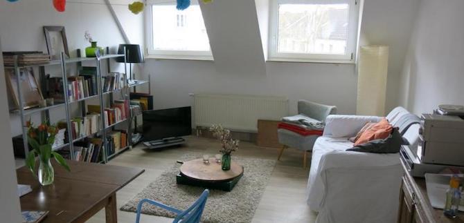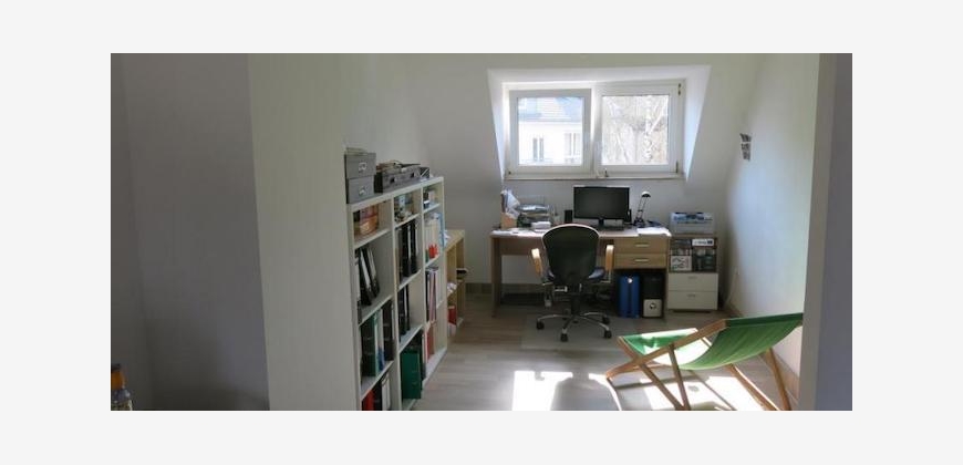 Wir vermieten unsere schöne 2 1/2 Zimmer-Dachgeschosswohnung mit kleiner ca. 8m² großer Terrasse . Die Wohnung ist hell und wird von uns unmöbliert vermietet. Wir könnten uns aber vorstellen einen Teil der Möbel in der Wohnung zu lassen. Sie besteht aus einem großen Wohnzimmer, Büro/Kinderzimmer, Küche, Bad und einem Schlafzimmer. Die Terrasse ist vom Gang aus zu erreichen. Die Küche besteht aus 2 Teilen und beinhaltet Herd, Backofen, kleinem Kühlschrank und Geschirrspüler. Parkplatz ist immer vor dem Haus verfügbar.