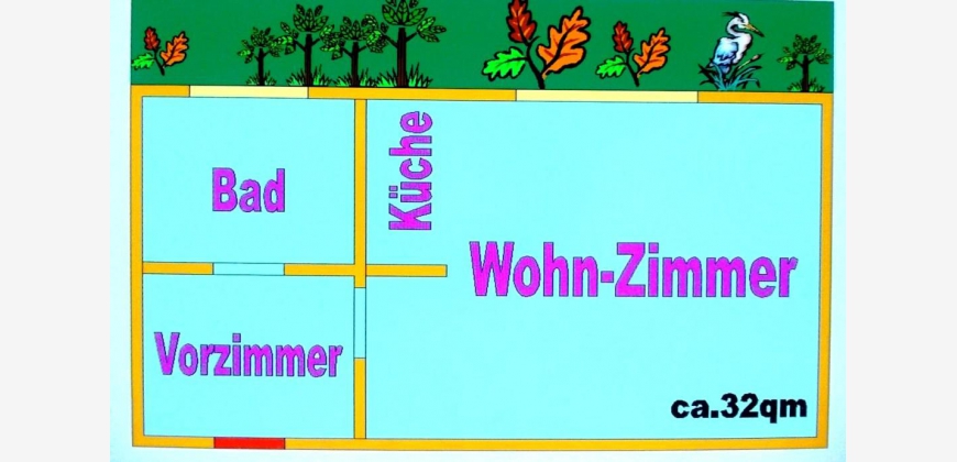 Eingang....Vorzimmer; Badezimmer mit Fenster; Wohnzimmer mit Küchennische und Doppelfenster;