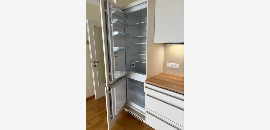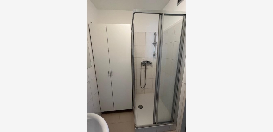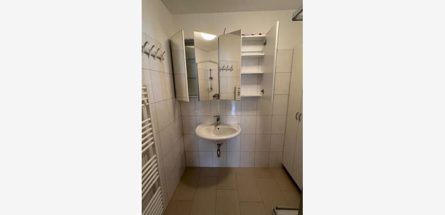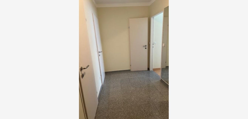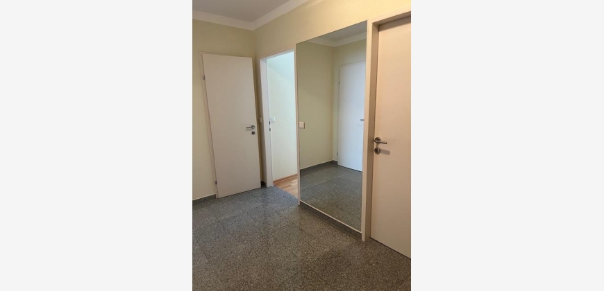 Vom geräumigen Vorzimmer gelangt man in den Abstellraum, in das Bad mit Dusche und Waschbecken, das WC, das Schlafzimmer und das große Wohnzimmer mit Zugang zur Loggia und zur integrierten, vollausgestatteten Kochnische (inkl. Geschirrspüler, Kühlschrank). Sicherheits-Eingangstüre, Buchenparkett, Granit- und Bodenfliesen.