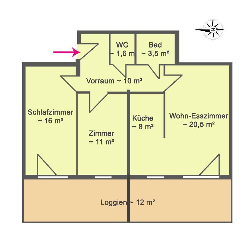 Die Gesamtwohnfläche von ca. 71 m² unterteilt sich in Vorzimmer, helles, freundliches Wohnzimmer mit Essbereich und Ausgang auf die westseitige, sehr ruhige Loggia. Die anschließende, neuwertiger Küche (2019) ist mit Marken-Geräten (Kühl-Gefrierkombi, Geschirrspüler, E-Herd…) ausgestattet. Außerdem stehen noch ein Zimmer (Schlafzimmer) mit Ausgang auf die zweite Loggia sowie ein Zimmer, das derzeit als Büro genützt wird zur Verfügung. Das Badezimmer verfügt über eine Dusche, eine Waschmaschine mit Trocknerfunktion steht ebenfalls zur Verfügung.