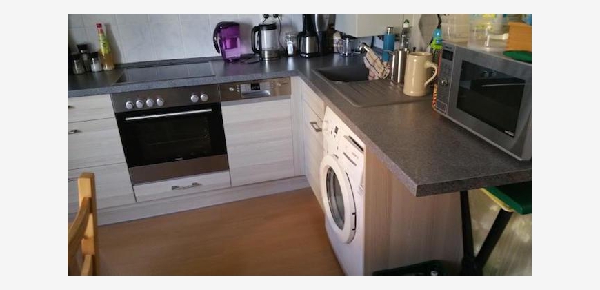 Großes Wohnzimmer mit 4 Fenstern, helles Schlafzimmer, gefliestes Badezimmer mit Badewanne, neuwertige Küche inkl. Spülmaschine, Kühlschrank, Waschmaschine und allen weiteren Geräten (Siemens).