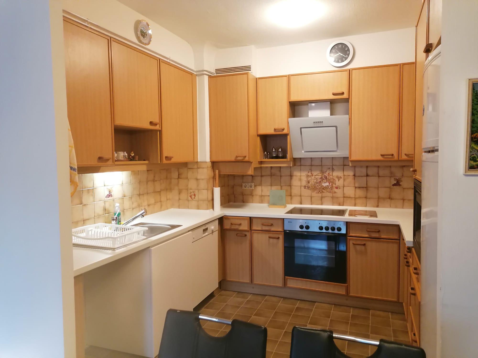 Die Küche ist komplett möbliert; Küchenelemente, Herd, Kühl-Gefrierkombination, Mikrowelle, Waschmaschine, Geschirrspülmaschine,…