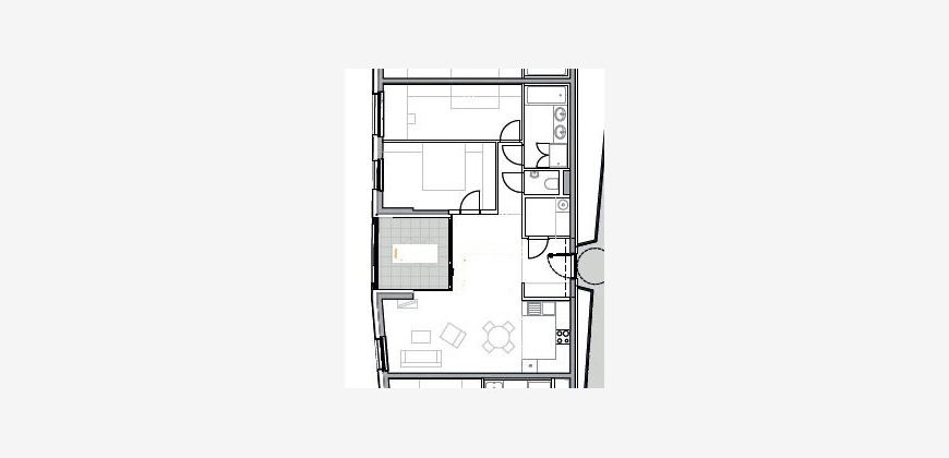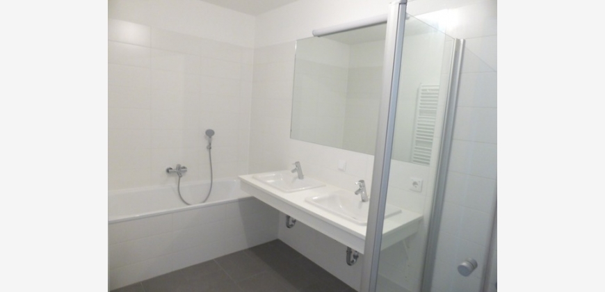 Die Wohnung gliedert sich in einen kleinen Vorraum mit Garderobe, Badezimmer (mit ebenerdiger Dusche und Badewanne), WC, Wohn-Essraum mit möblierter Küche, Schlafzimmer, Kinderzimmer, Abstellraum (mit WM-Anschluss) sowie Loggia mit ca. 5 m². Die Küche ist mit allen gängigen elektrischen Geräten (inklusive Dunstabzugshaube) ausgestattet.