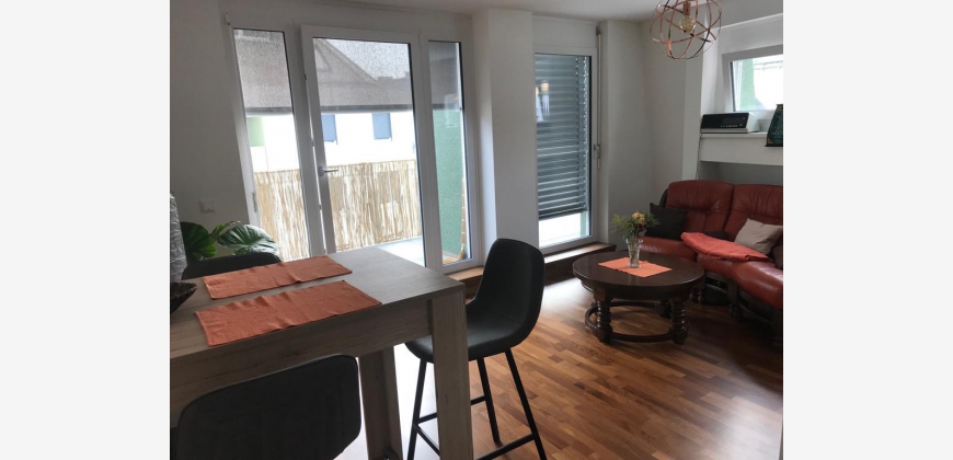Diese neuwertige helle 2 Zimmerwohnung liegt im 22. Bezirk, unweit von der U2 Station Hardeggasse (3 Gehminuten), dem Donauzentrum, der Donauinsel, der alten Donau und der Lobau, die sich ausgezeichnet für die Freizeitgestaltung eignen. Die Wohnung besteht aus einem geräumigen Vorraum, Schlafzimmer, Bad mit Dusche + WC + Waschmaschinenanschluss, Wohnzimmer/Küche mit großzügigen Belichtungsflächen und das Highlight der Wohnung ist die 30m² große sonnige Terrasse! Sie liegt im 3. Liftstock, ist rollstuhlgängig und alle Wohnräume sind mit Parkettboden und Fußbodenheizung ausgestattet. Weiters verfügt die Wohnung über eine hochwertige Einbauküche und kann auf Wunsch voll - oder teilmöbliert (siehe Fotos) übergeben werden.
