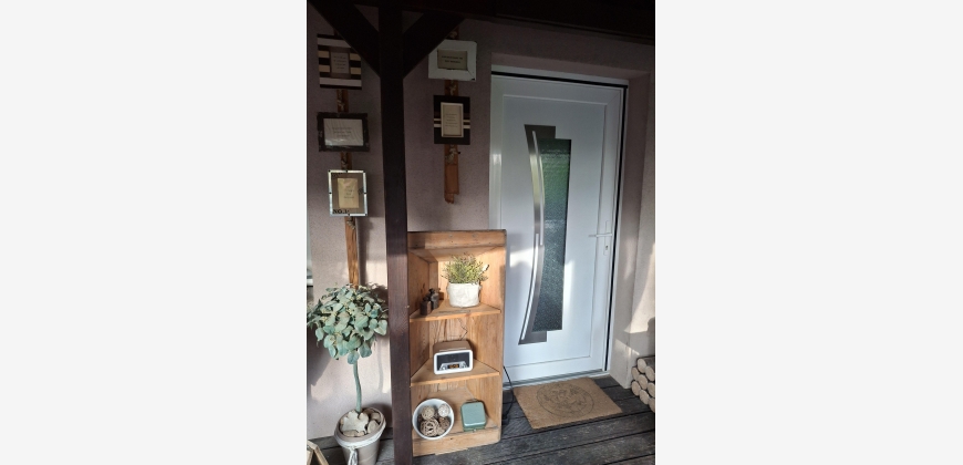 Das 650m2 große Grundstück, das vorletzte der Wohnsiedlung, befindet sich in absoluter Ruhelage, umgeben von Feldern und Wäldern.