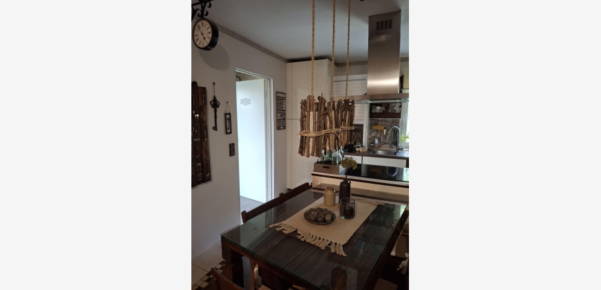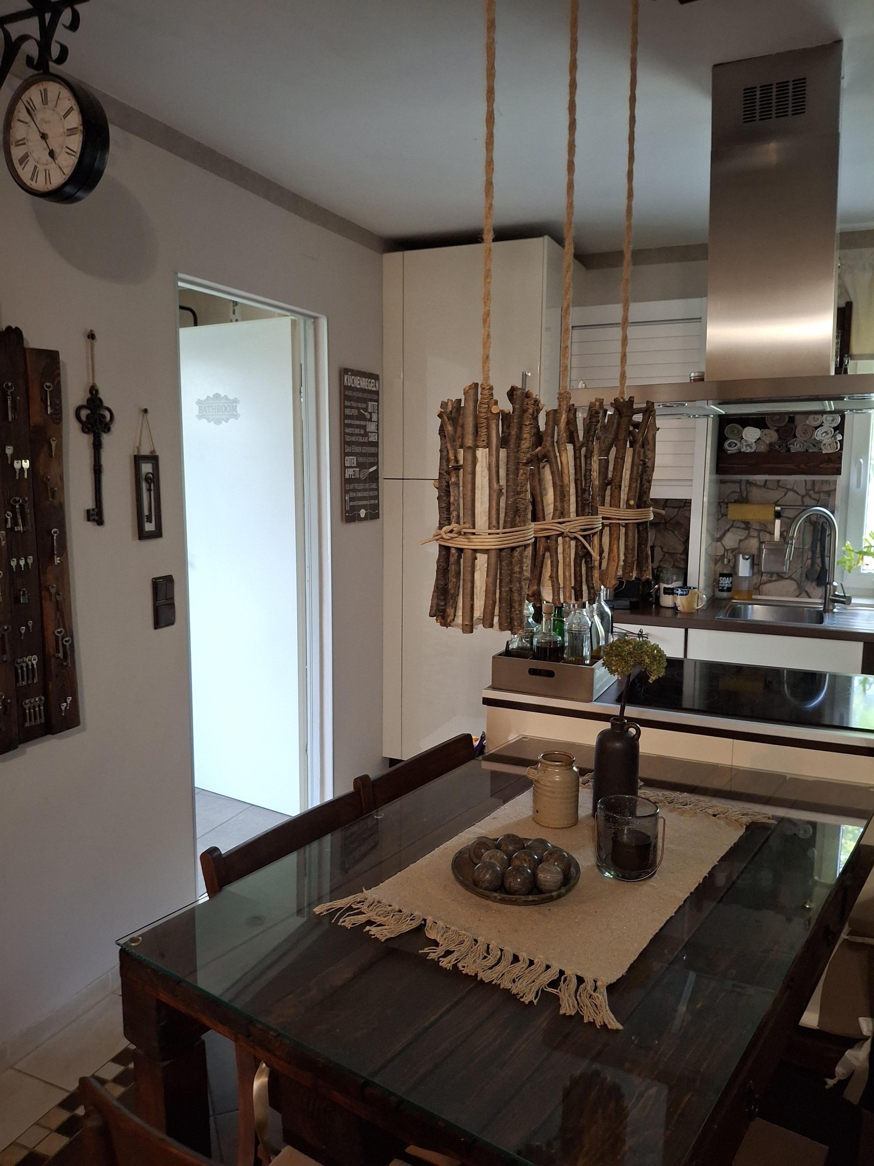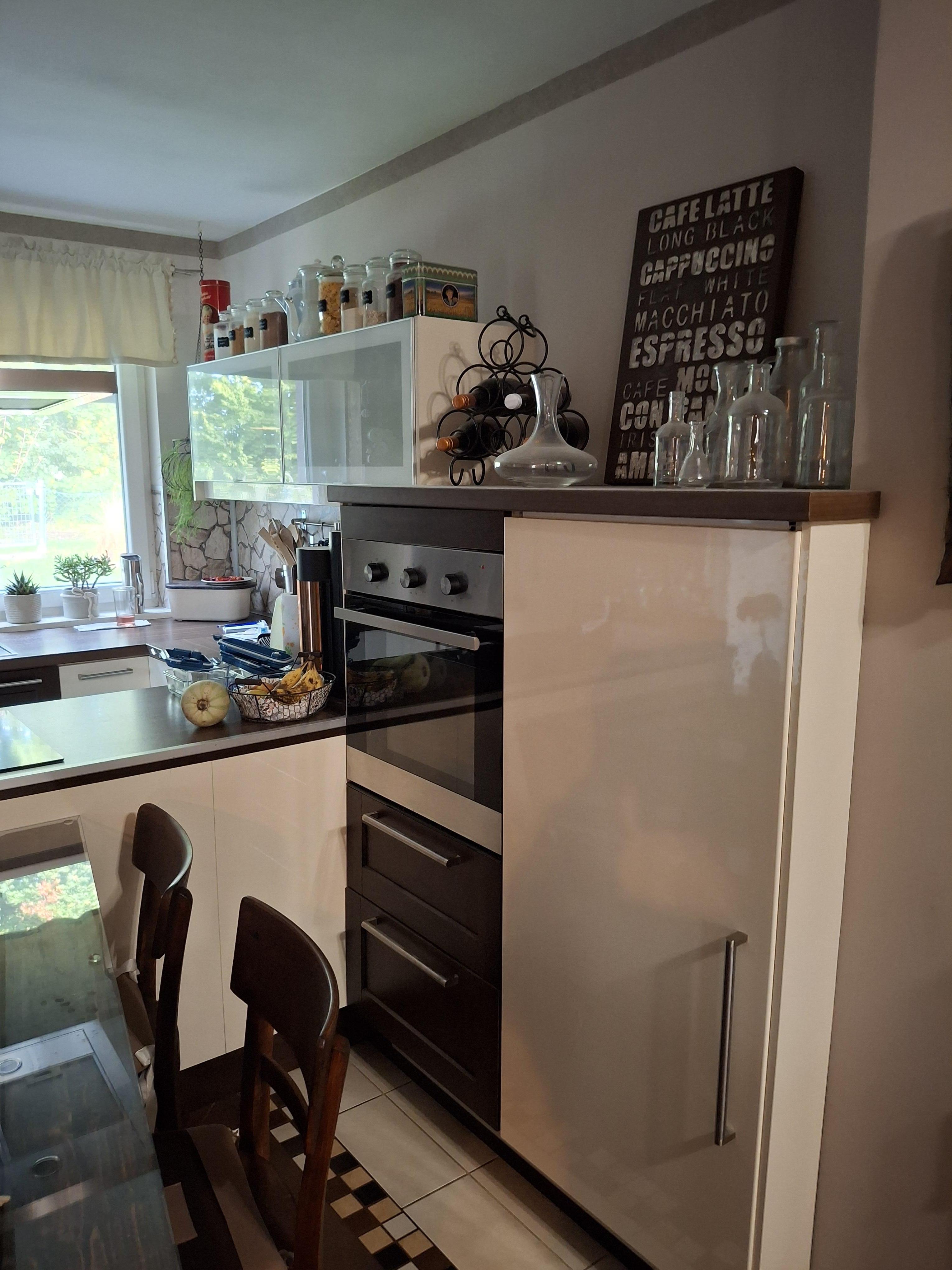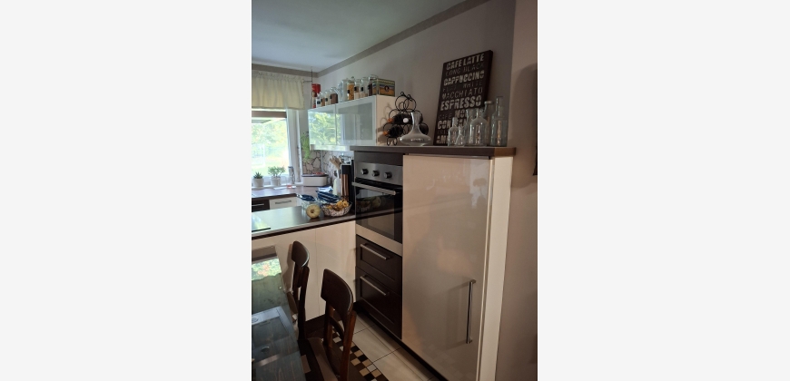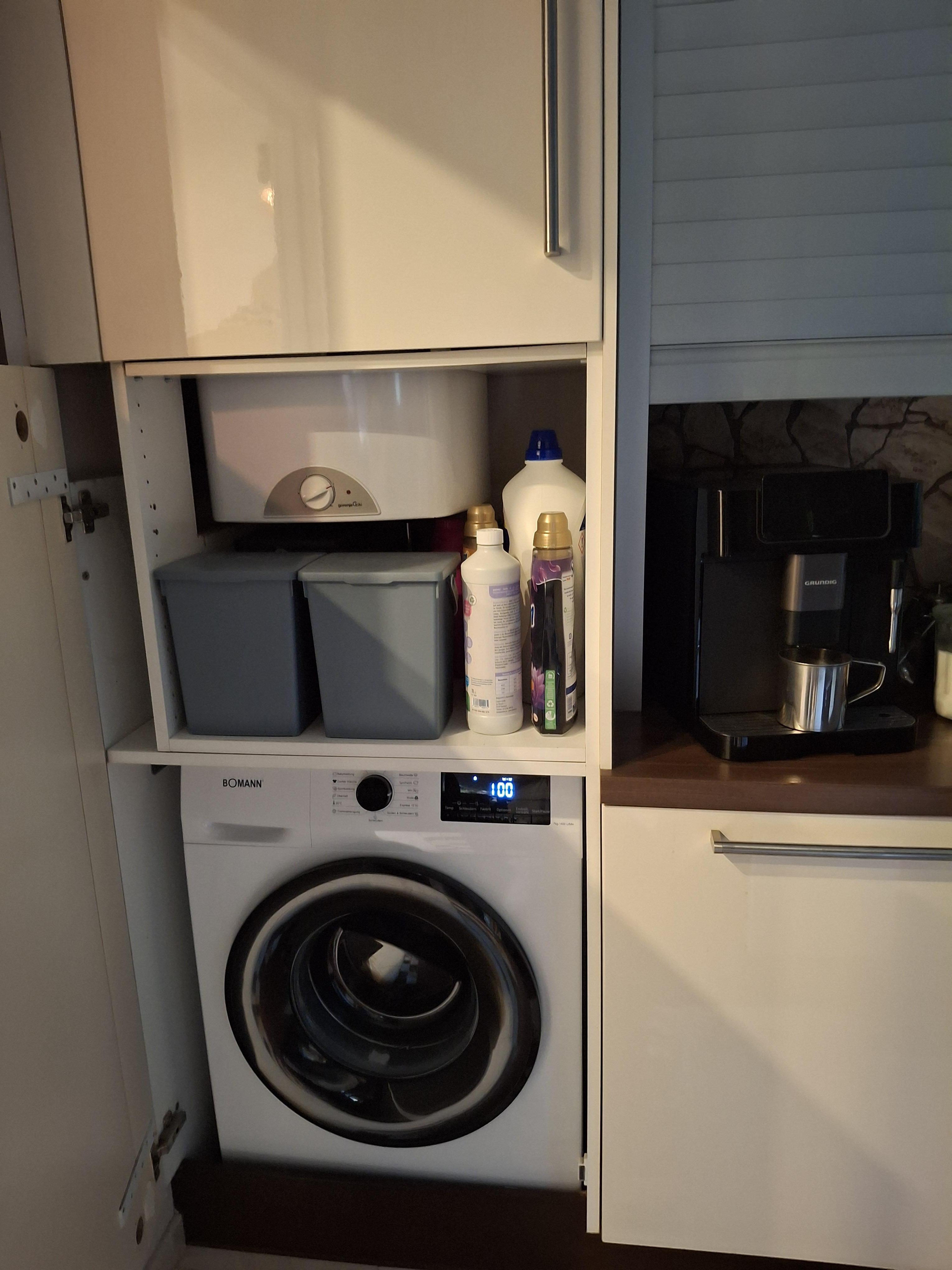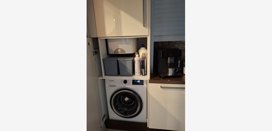 Die Küche ist optimal eingerichtet und mit einem Kasten für Warmwasserspeicher und Waschmaschine versehen.