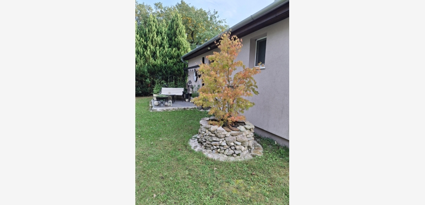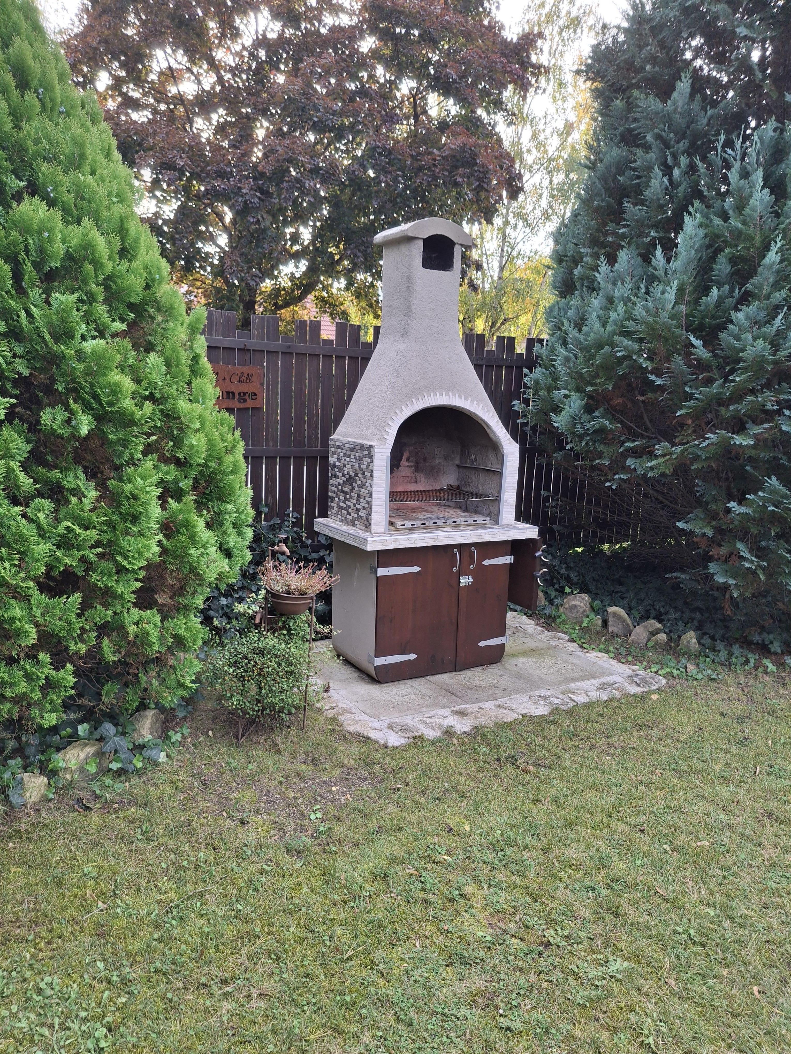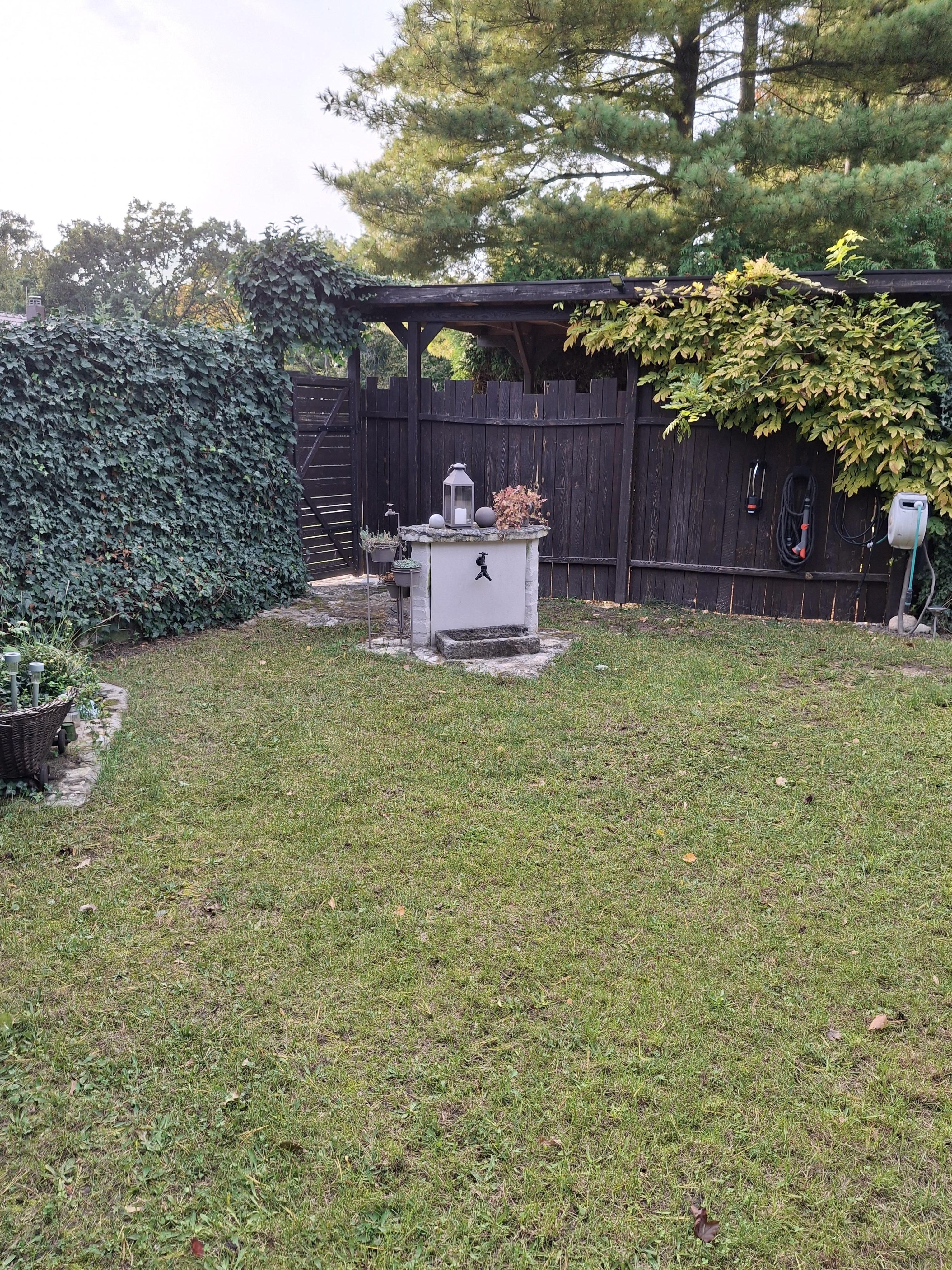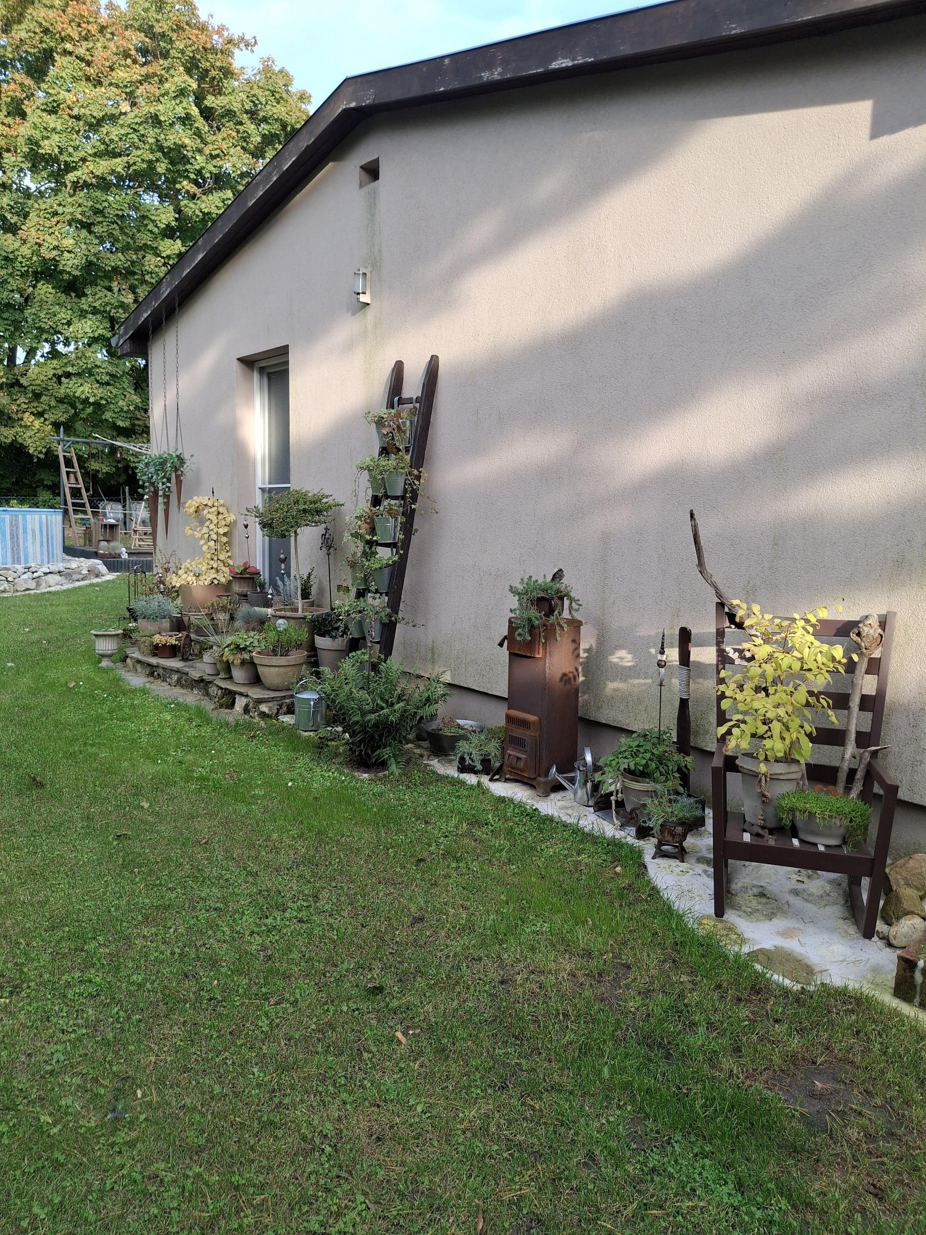 Neben einer künstlichen Quelle, die von zahlreichen Vögeln und Insekten besucht wird, gibt es einen Pool mit 5,5m Durchmesser und Sonnendeck, ein Gartenhäuschen, das als Lagerraum und für die Pooltechnik genutzt wird. Eine verflieste Terrasse, die am Nachmittag herrlich schattig ist, ein Hochbeet für Gemüse- und Kräuteranbau, hinter dem Carport ein Holzhäuschen für Rasenmäher und Holzvorrat.