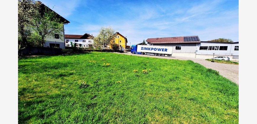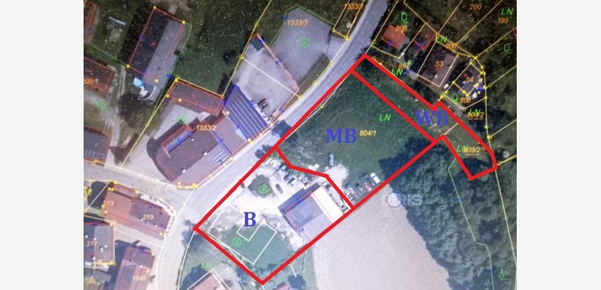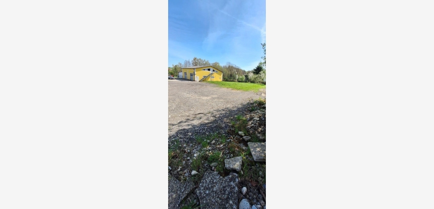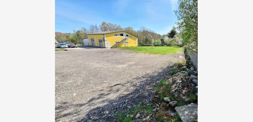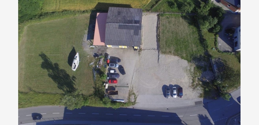 4950 m2 Gesamtfläche davon ca. 2500m2 aufgeschlossenes Betriebsbaugebiet auf dem sich eine 231m2 große genehmigte Kfz Werkstatt mit Obergeschoss und ca 100m2 Carport für 8 Stellplätze befindet.
