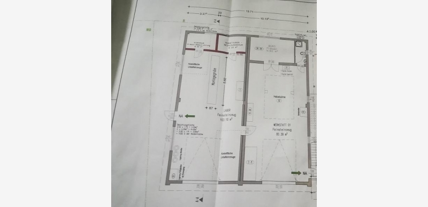 Sollte das Obergeschoss einen anderen Nutzen finden, hat der künftige Eigentümer der Gewerbeimmobilie trotzdem immer noch die Möglichkeit, sowie das Recht, auf dem 2500m2 großem, anliegenden gemischten Baugrundstück, ein für sich notwendiges Privatgebäude zu errichten und entsprechend zu widmen.
