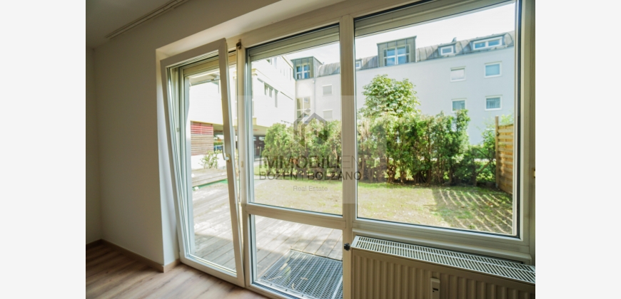 1-Zimmerwohnung mit Garten in der Kaufmannstraße zu vermietet. Die Wohnung befindet sich im Erdgeschoss und hat eine Fläche von ca. 47 m². Sie ist nach Süden ausgerichtet und besteht aus einem Eingangsbereich, einem lichtdurchfluteten Wohn-/Schlafraum mit Kochnische und einem Badezimmer. Des Weiteren verfügt die Immobilie über einen privaten Garten, einen Keller und Autostellplatz in der Garage. Die Immobilie wird teilmöbliert vermietet.