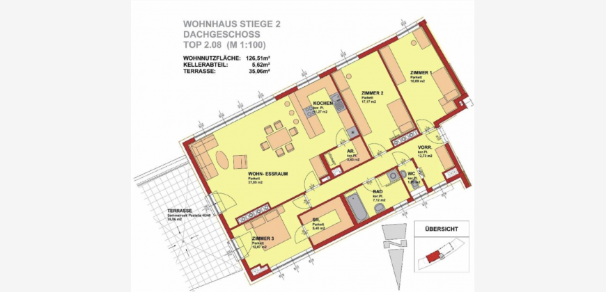 Dieses traumhafte Objekt am Stadtrand (Blick auf Schneeberg und Hohe Wand) ist direkt am Stadtpark lokalisiert. Zu Fuß ist man in nur 5 min am Stadtkern mit tollen Einkaufsmöglichkeiten. Neben Billa Plus, Hofer, Penny, Lidl sind auch viele lokale Geschäfte vorhanden (Bäckerei, Fleischer, …). Diese Dachgeschosswohnung enthält keinerlei Dachschrägen und die Dachterrasse ist 35m2 groß. Es gehört zu dieser Wohnung auch ein Tiefgaragen Parkplatz und weitere können optional dazu gemietet werden.