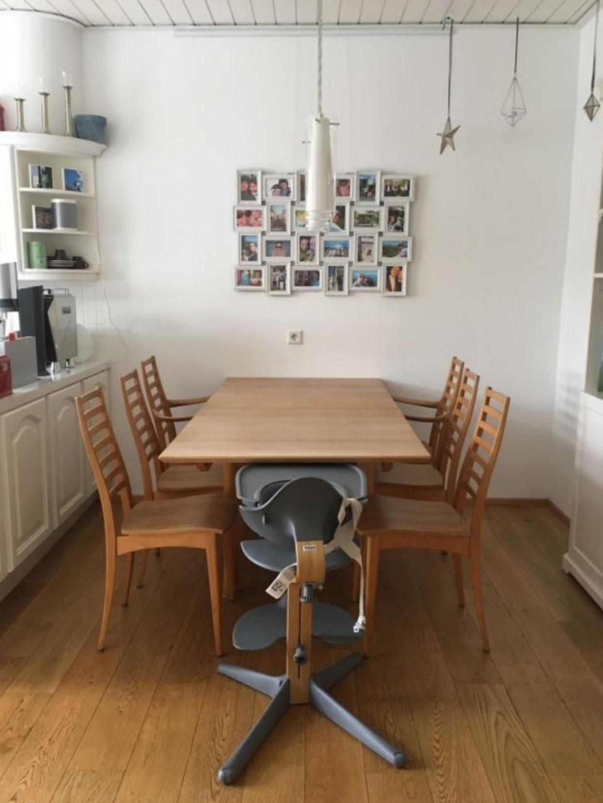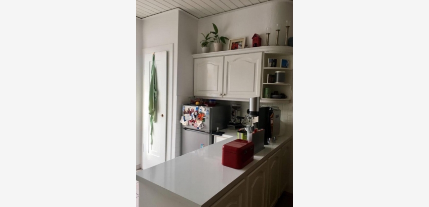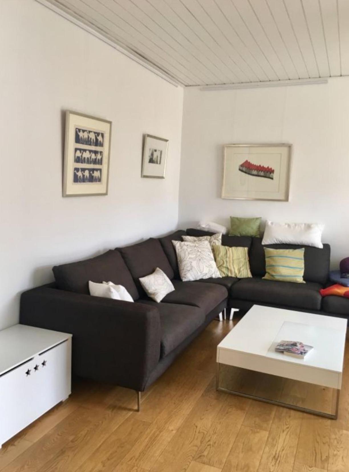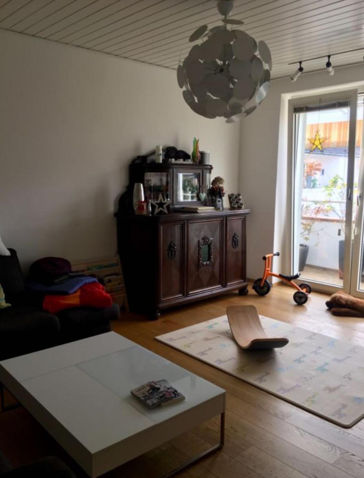 Im Wohnzimmer ist eine hochwertige Küche integriert, welche mit E-Herd, Backofen und einem Kühl- und Gefrierschrank ausgestattet wurde. Im ganzen Raum wurde ein neuer Holzboden verlegt.