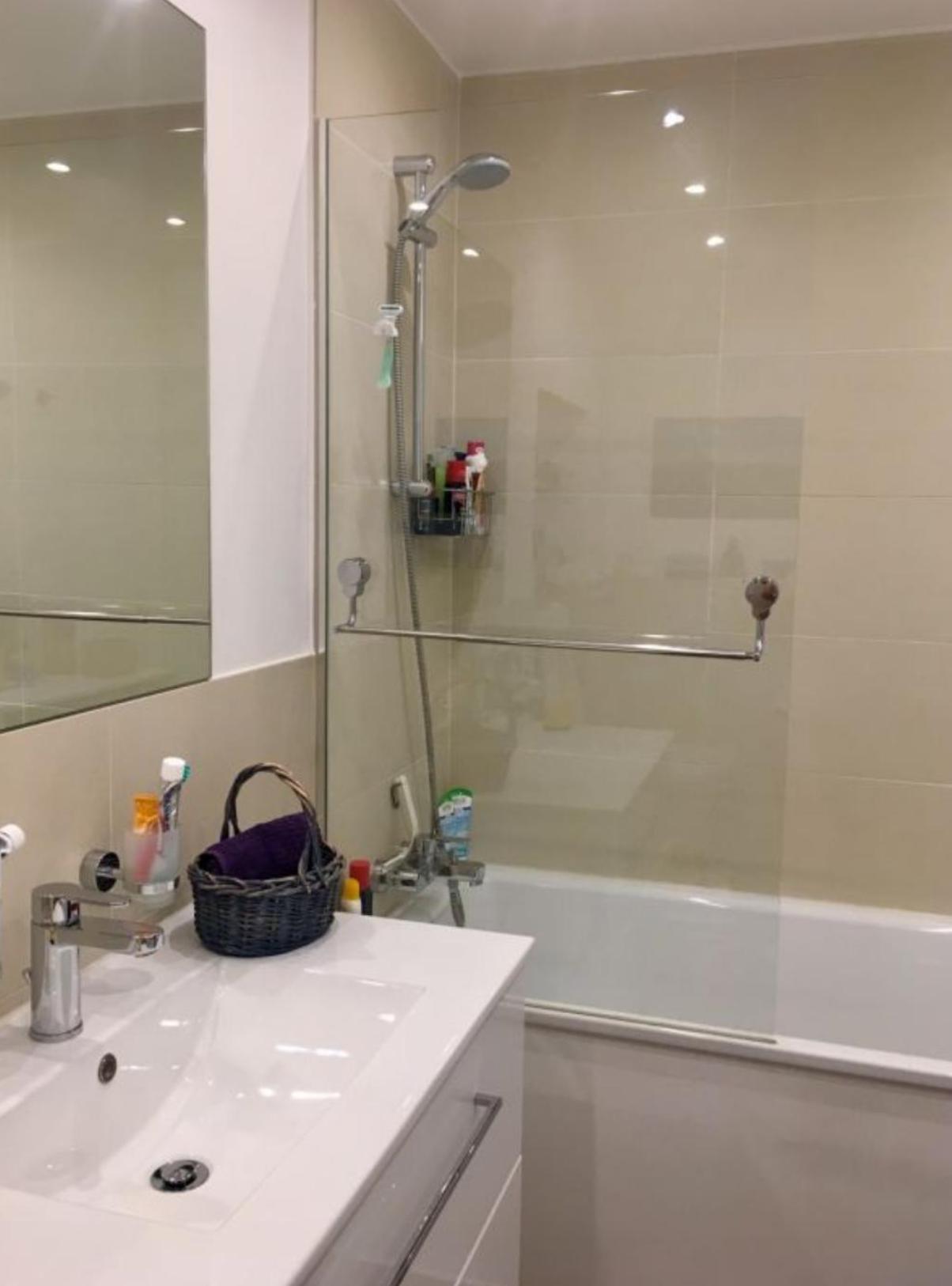 Das WC als auch das Badezimmer wurden neu verfliest. Im Badezimmer wurden zusätzlich eine Badewanne, ein Waschbecken, ein Spiegelschrank und ein Handtuchheizkörper neu installiert. Das Badezimmer bietet zusätzlich Platz und alle notwendigen Anschlüsse für eine Waschmaschine.