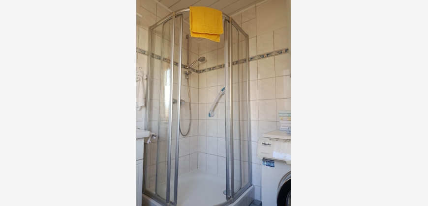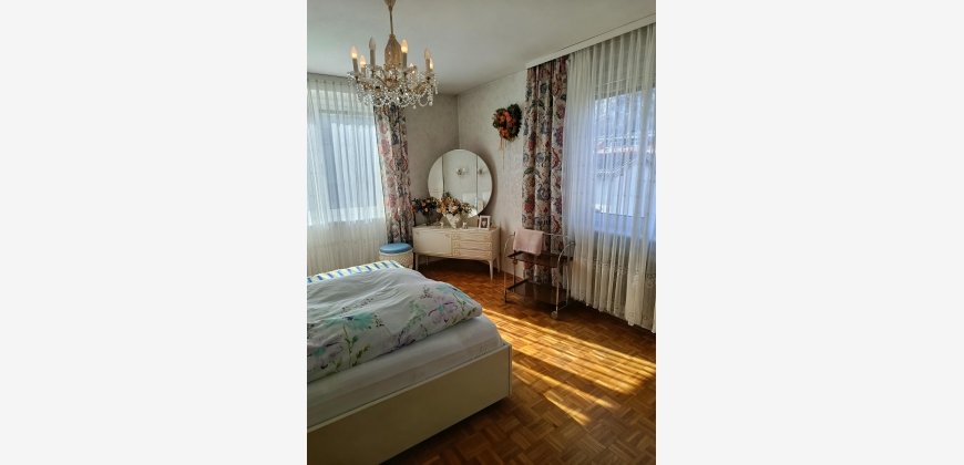 Die 1974 erbaute und gut erhaltene Wohnung verfügt über ein Badezimmer, eine Loggia und ist vollständig ausgestattet. Zu den Ausstattungsmerkmalen zählen Parkettböden, eine Einbauküche sowie Fernwärme mit Ölheizung. Ein Kellerabteil und ein Parkplatz gehören ebenfalls zur Immobilie.