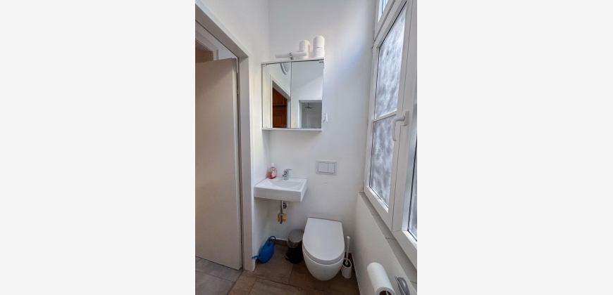 Es grenzt nur an ein weiteres Zimmer und liegt direkt am Flur, von dem aus du Bad und Eingangstür schnell erreichst.